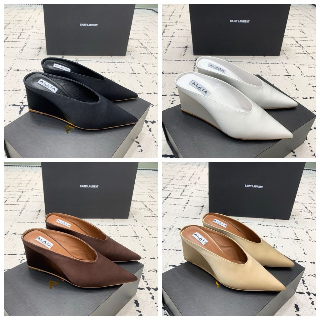Alaia Cube Wedge Mules 7.5cm in Satin 2025