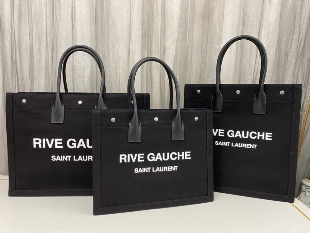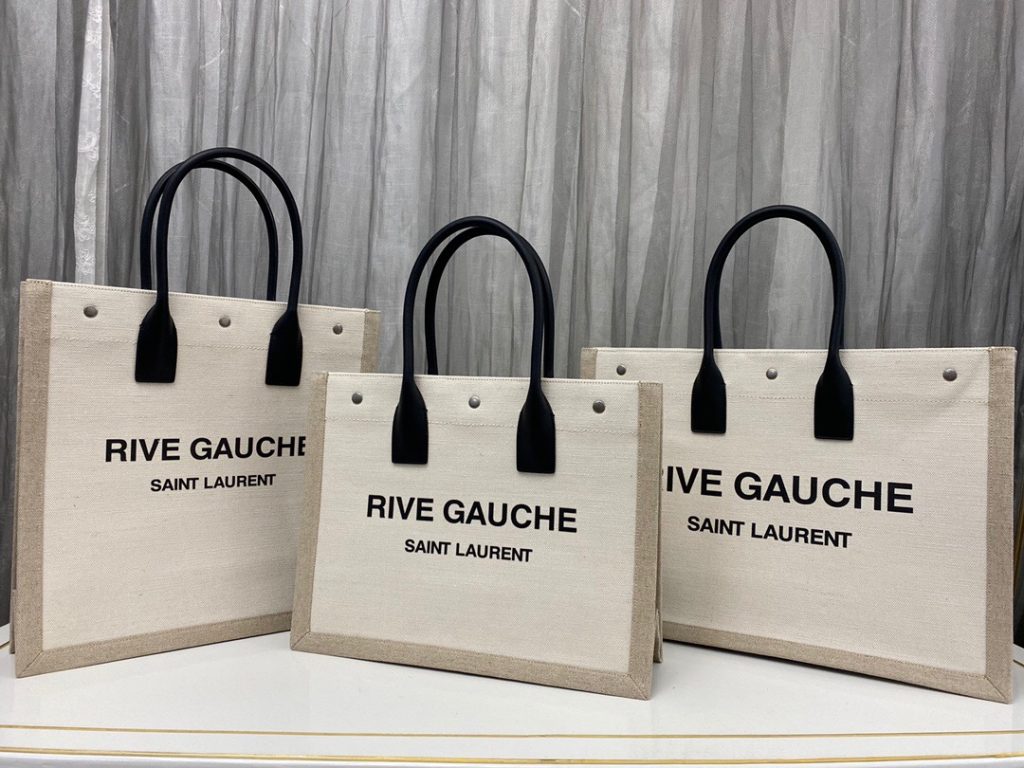 Saint Laurent Rive Gauche Large Tote Bag in Printed Canvas and Linen