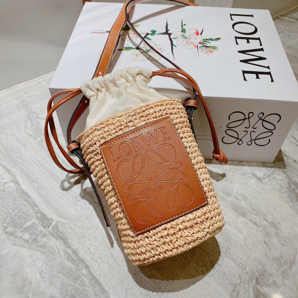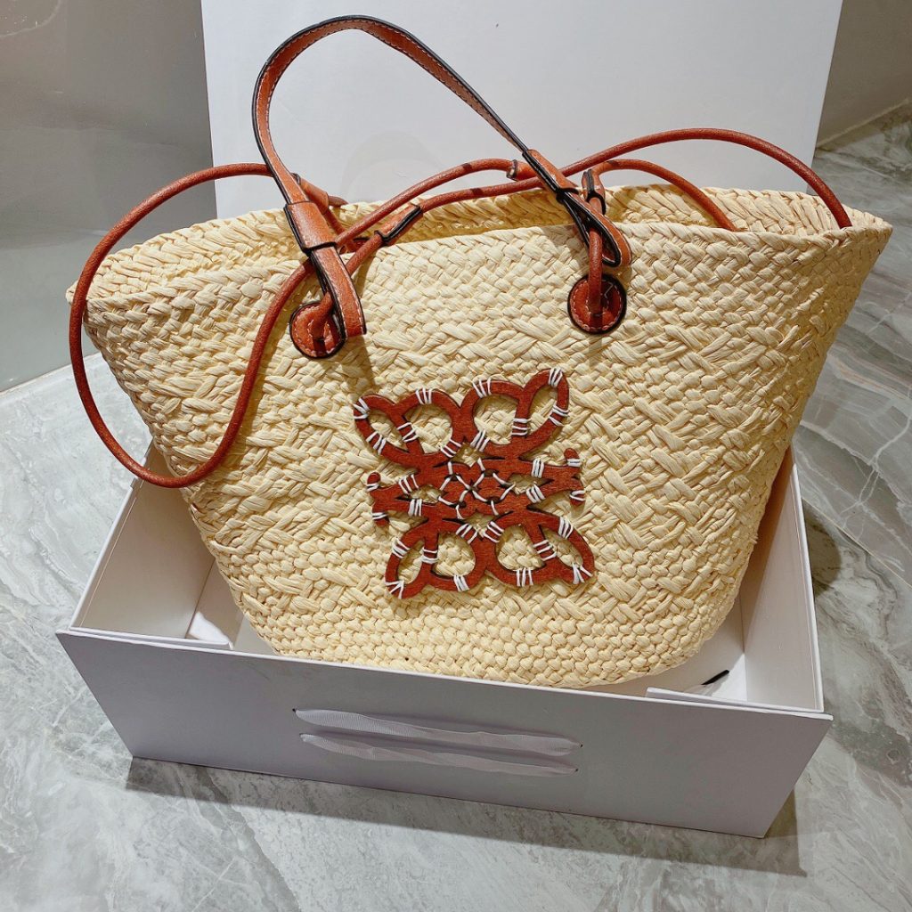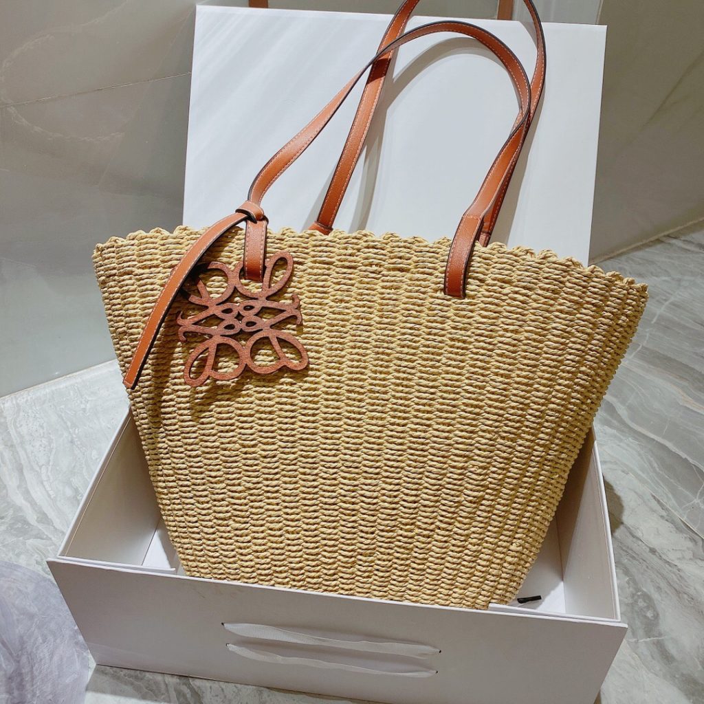 The LOEWE Font Tote is a cuboid bag woven entirely in raffia with a contrasting LOEWE signature.