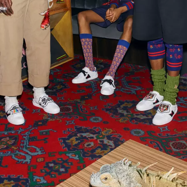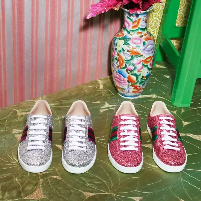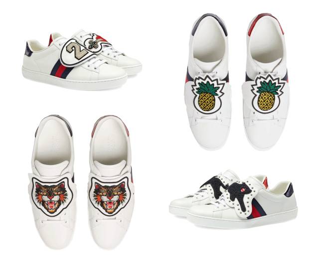 We can only say that Ace white shoes play really well, in the latest season it add more “character”! Extend the concept of personalized DIY, launched Ace Patch series which can replace the different patches, this achieve more personalized forms of expression. Varity of colorful patches for Love, Pineapple, Gorgeous Bowknot, etc., can be freely replaced in the upper, to create a unique personalized Gucci white sneakers.