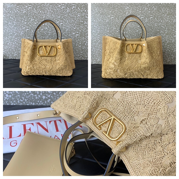 Valentino Medium VLogo Raffia Straw Summer Tote bag Beige 2024