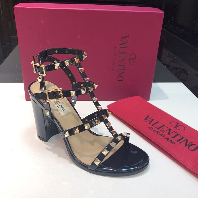 Valentino Classic Rockstud Heel Sandals 9.5cm in Patent Leather with Straps Black 2025