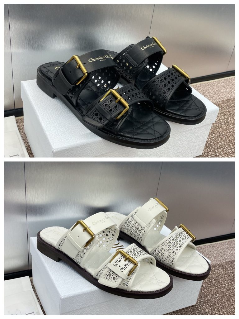 Dior D-Avenue Flat Buckle Slides Sandal in Calfskin with Openwork Microcannage Motif 2025
