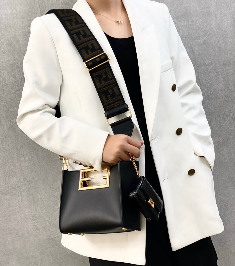 Fendi First bag Nano version, with diagonal FF clasp and clip at the back that allows it to be attached to larger bags or belts like a charm.