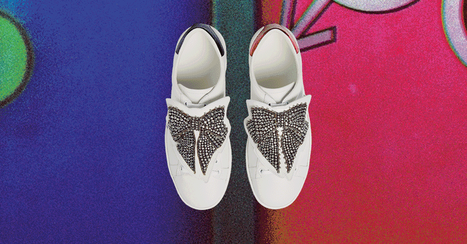 We can only say that Ace white shoes play really well, in the latest season it add more “character”! Extend the concept of personalized DIY, launched Ace Patch series which can replace the different patches, this achieve more personalized forms of expression. Varity of colorful patches for Love, Pineapple, Gorgeous Bowknot, etc., can be freely replaced in the upper, to create a unique personalized Gucci white sneakers.