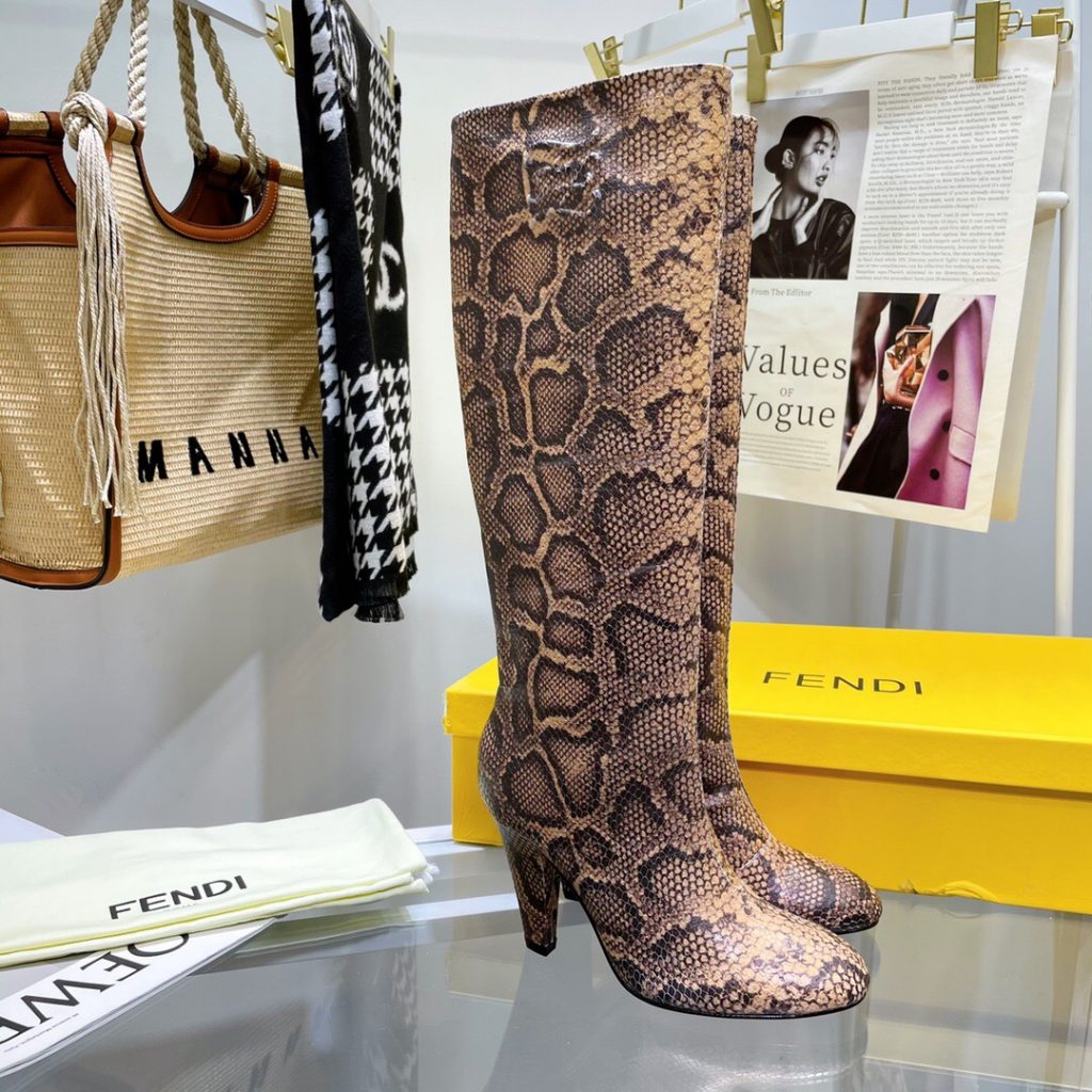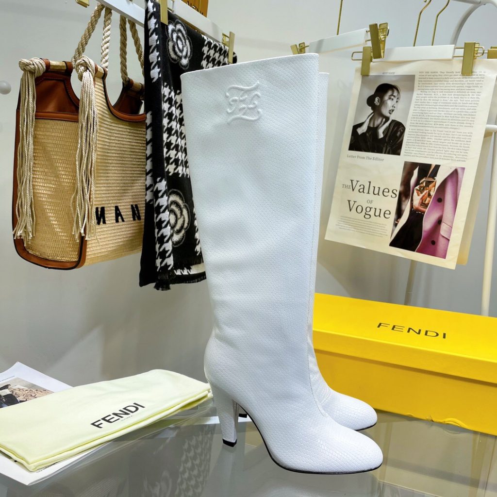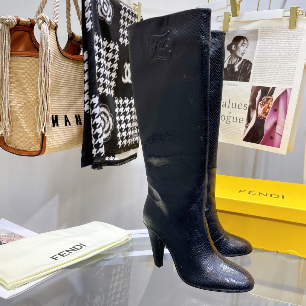 Boots with straight leg and rounded toe. Finished with embossed FF