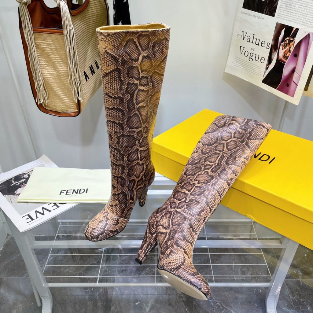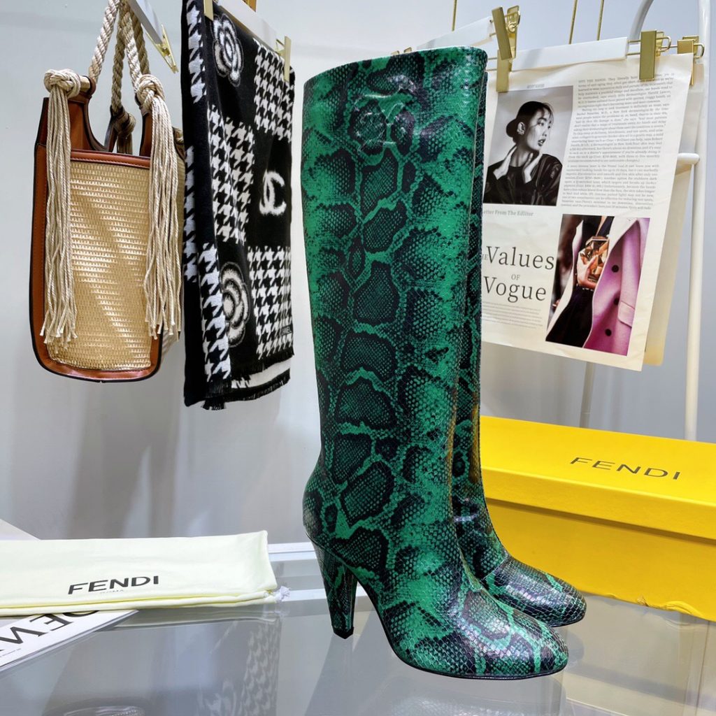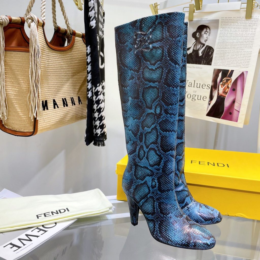 Boots with straight leg and rounded toe. Finished with embossed FF