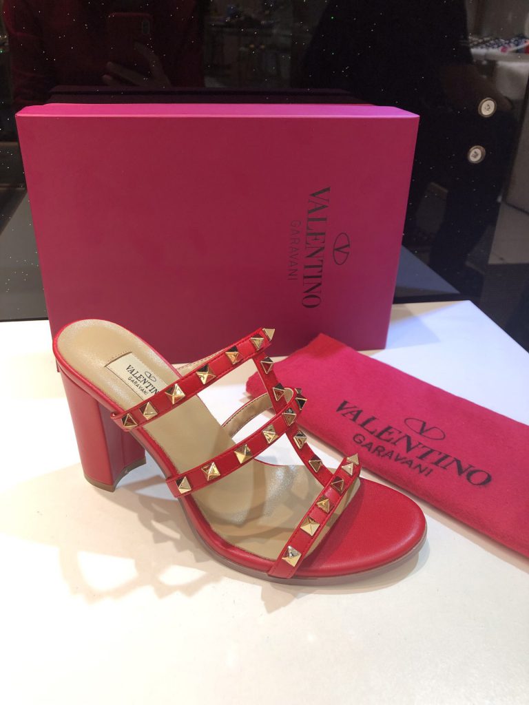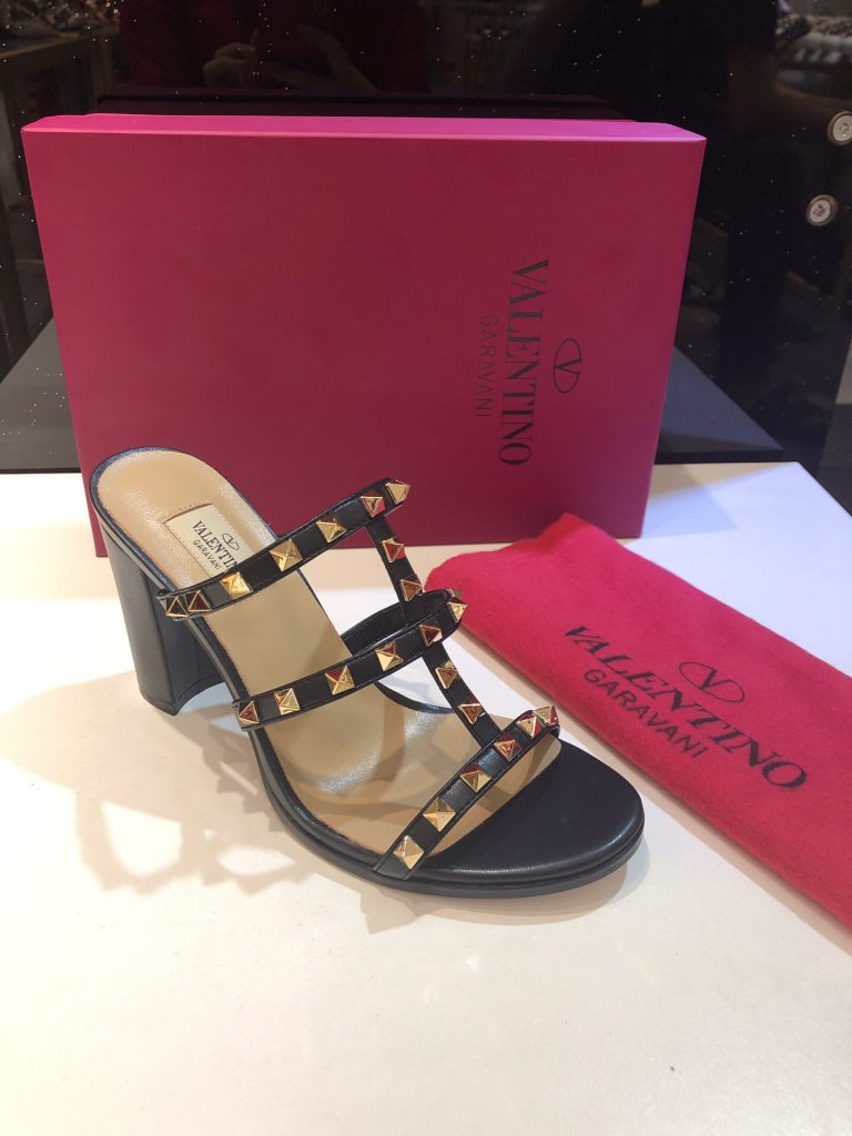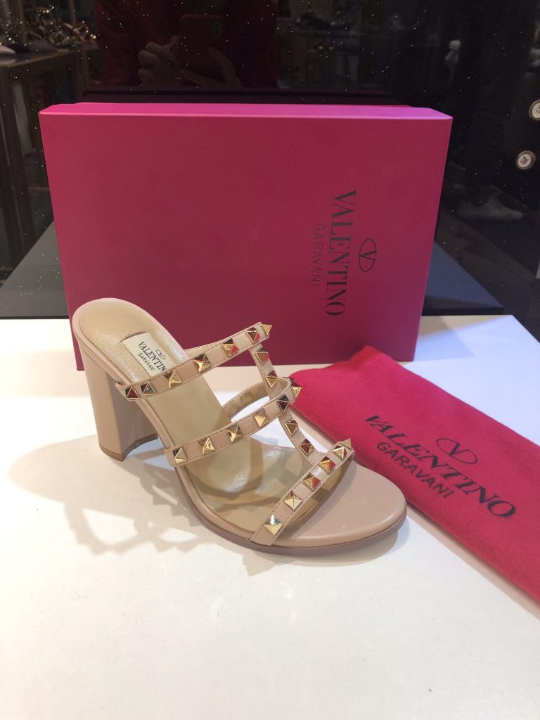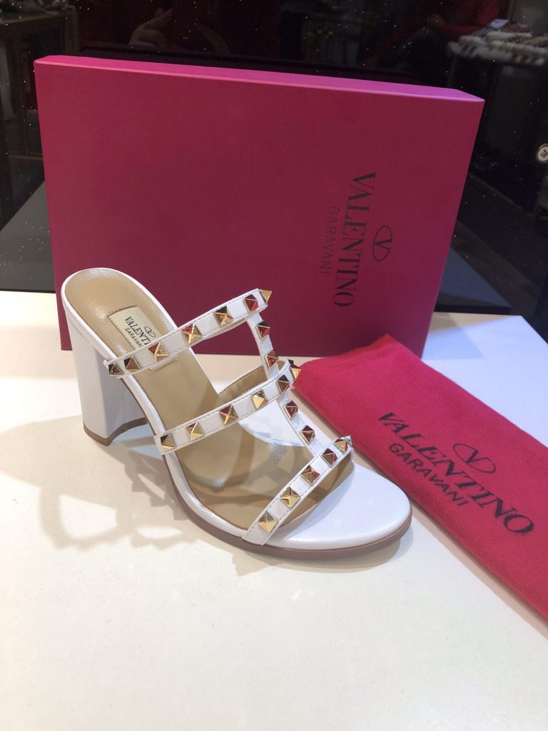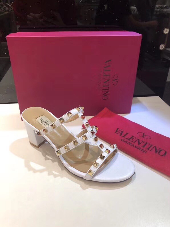 Valentino One Stud Patent Leather Medium Heel Slide Sandals 6cm 2022