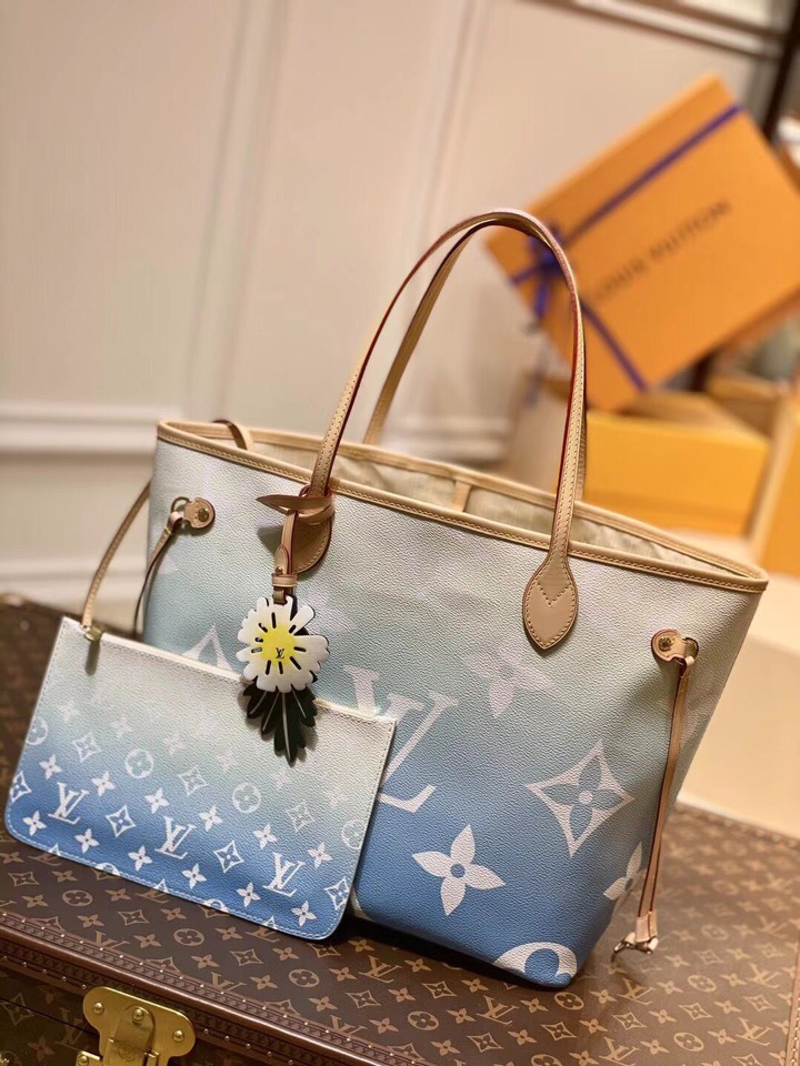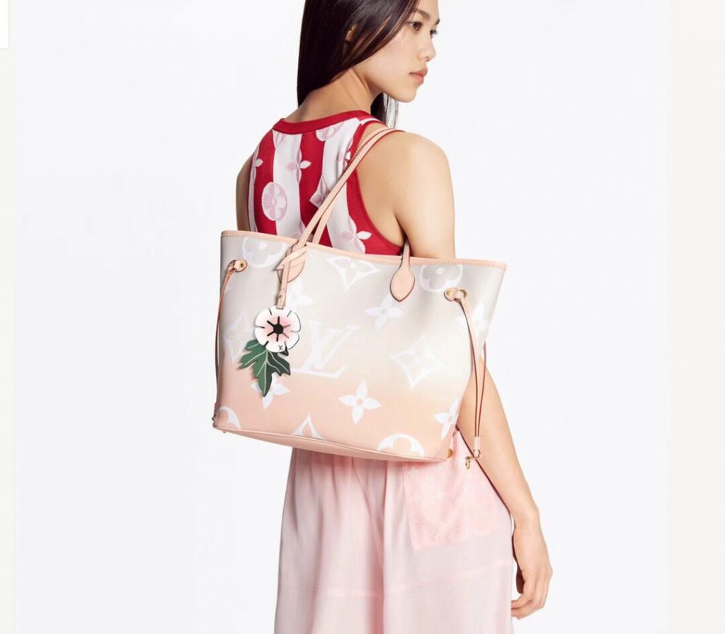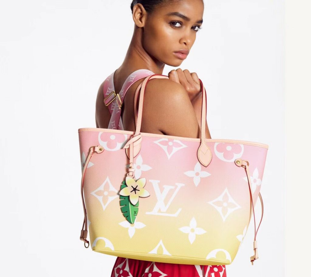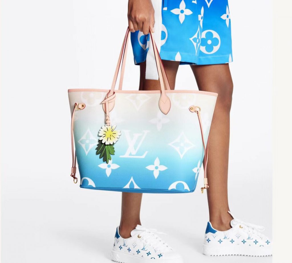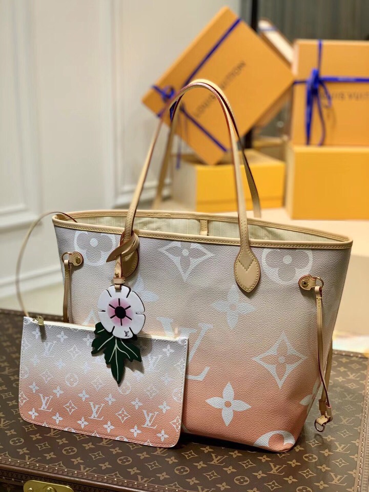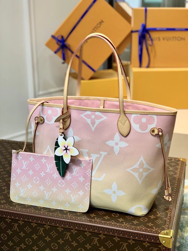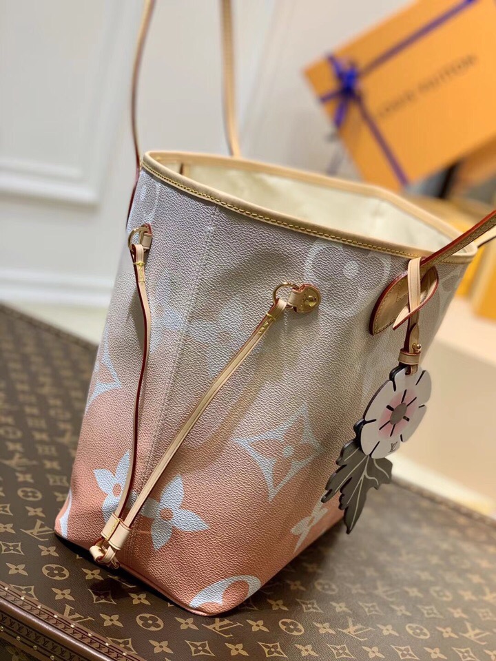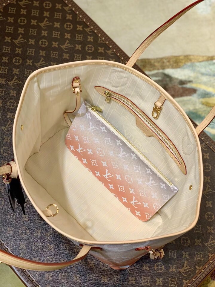 This summery Neverfull MM tote bag is made from Monogram Giant canvas in a gradient pastel colorway