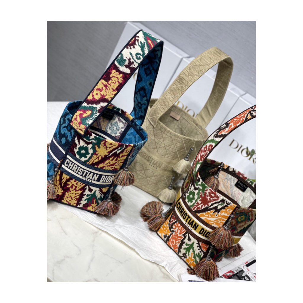 Designed to hold all the daily essentials, it is fully embroidered with the latte mutlicolor Dior Constellation motif, imagined by artist Pietro Ruffo and further adorned with the ‘CHRISTIAN DIOR’ signature on the front. The tote exemplifies the House’s signature savoir-faire and may be carried by hand or worn over the shoulder.
