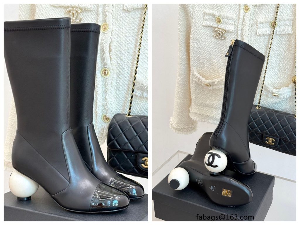Chanel Stretch Calfskin & Patent Leather Ankle Boots with Maxi Pearl Heel Black 2025