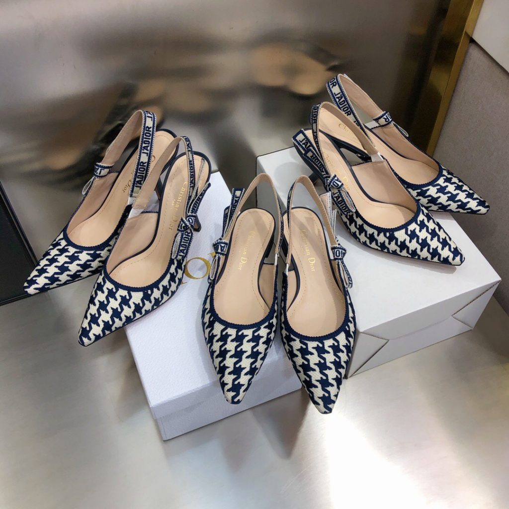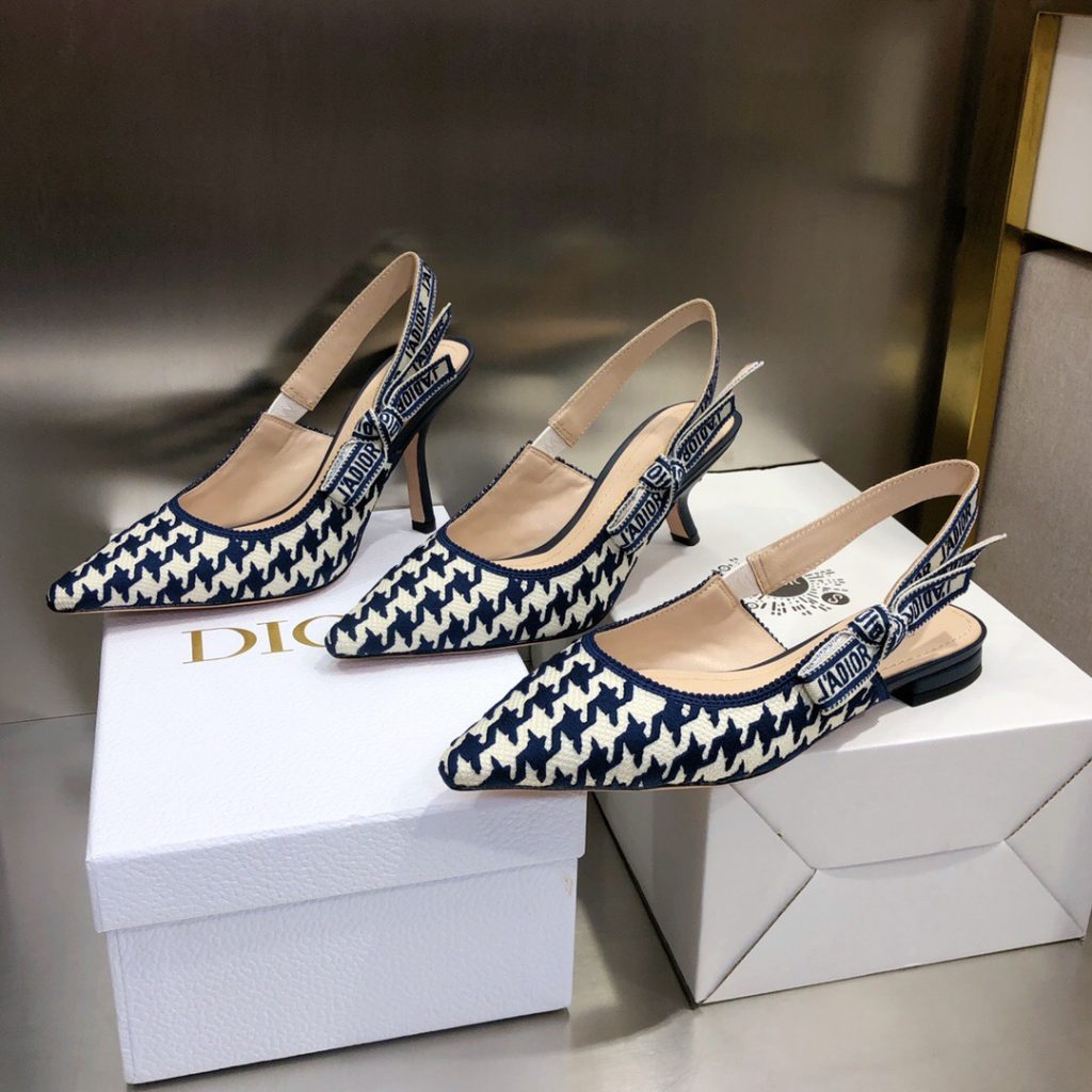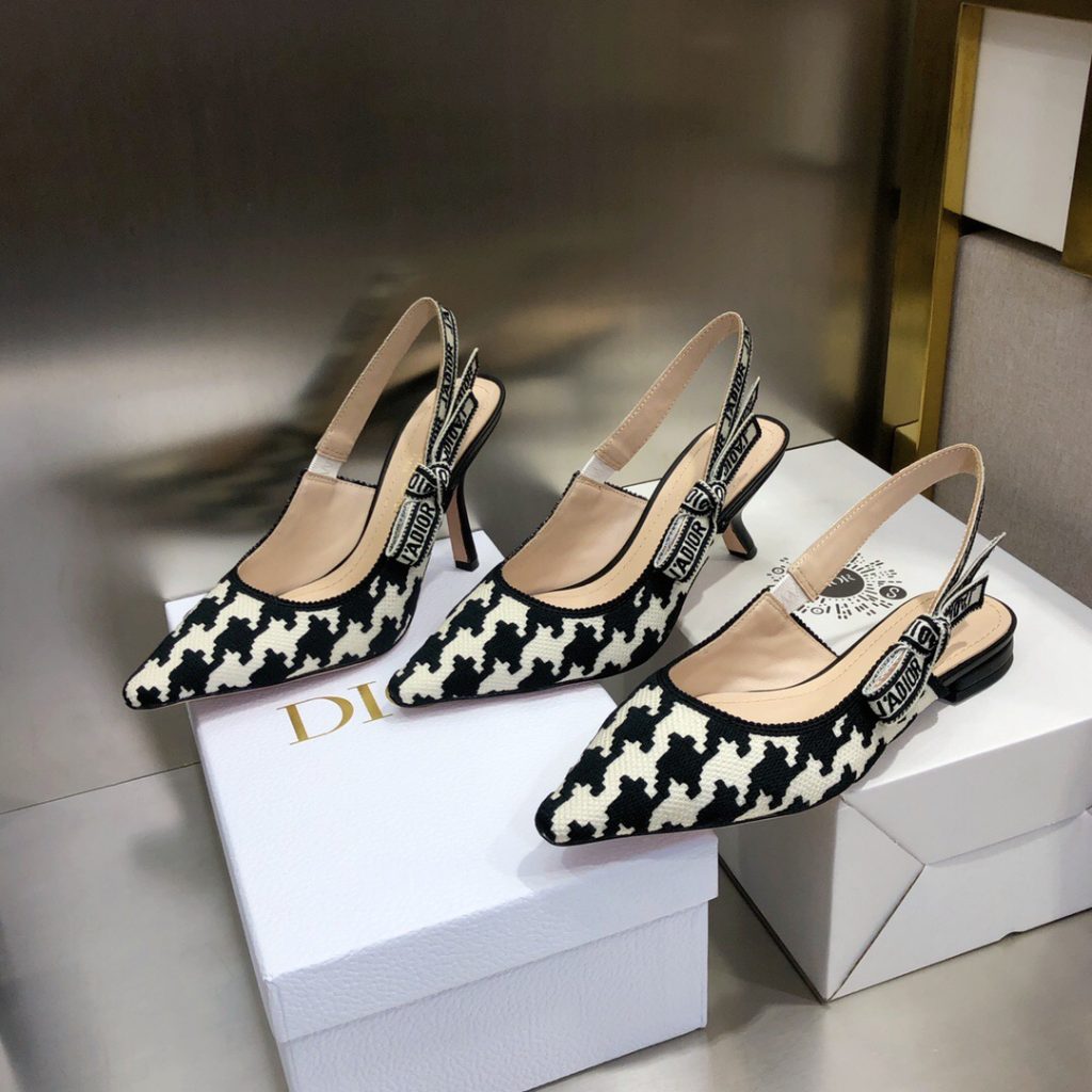 Dior J’Adior Slingback in Cotton Embroidery with Micro Houndstooth Motif