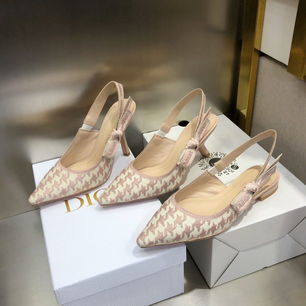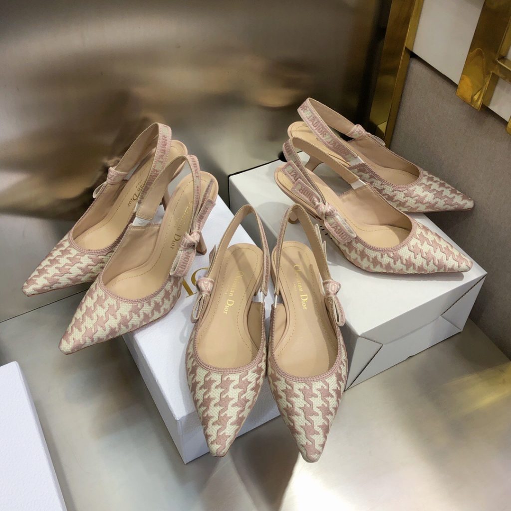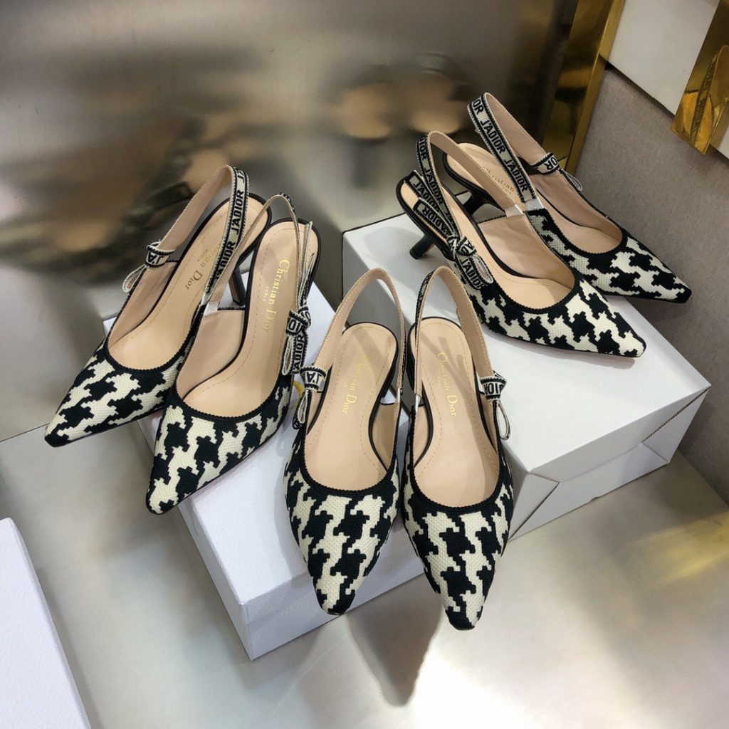Dior J’Adior Slingback in Cotton Embroidery with Micro Houndstooth Motif