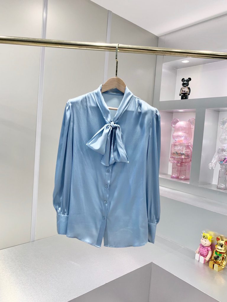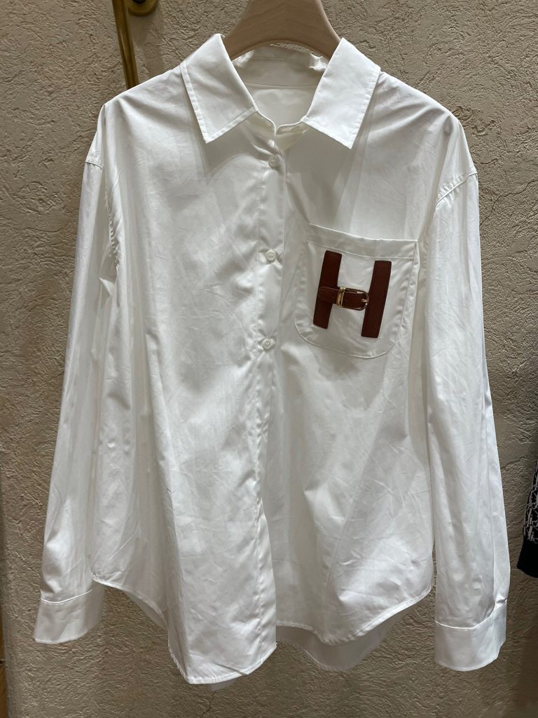 Shirt with classic collar, slits at the sides, longer hem at the back and concealed fastening.