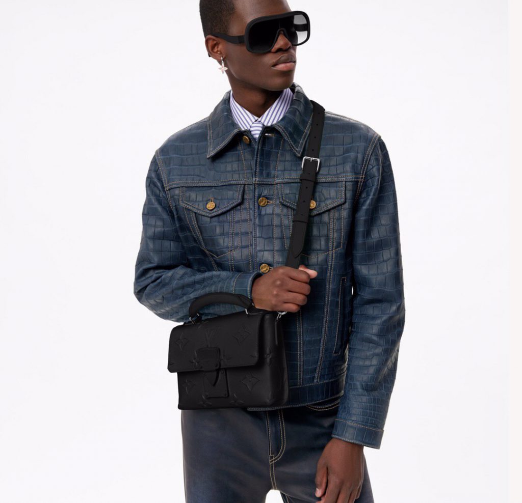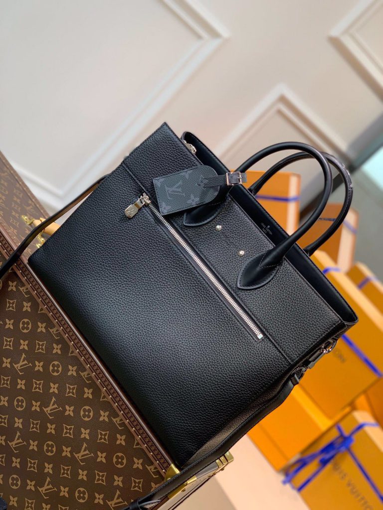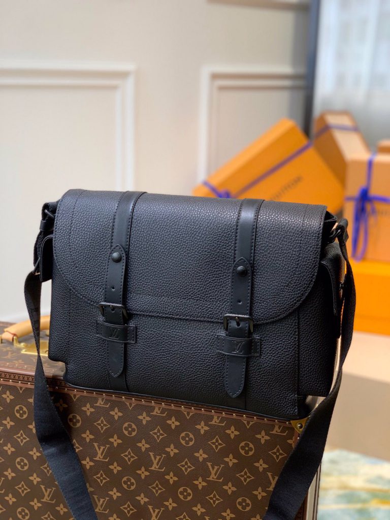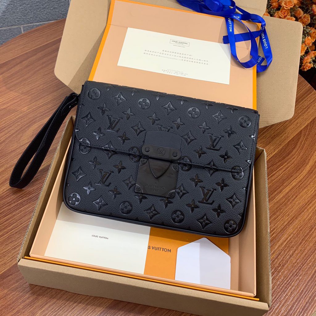 Soft and supple as an old-fashioned aerogram letter, fine-grained calfskin is accented with the LV initials in matte black metal.
