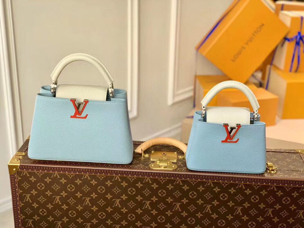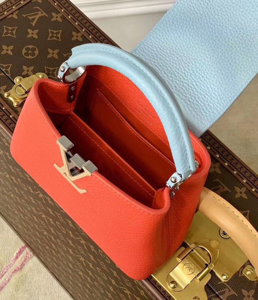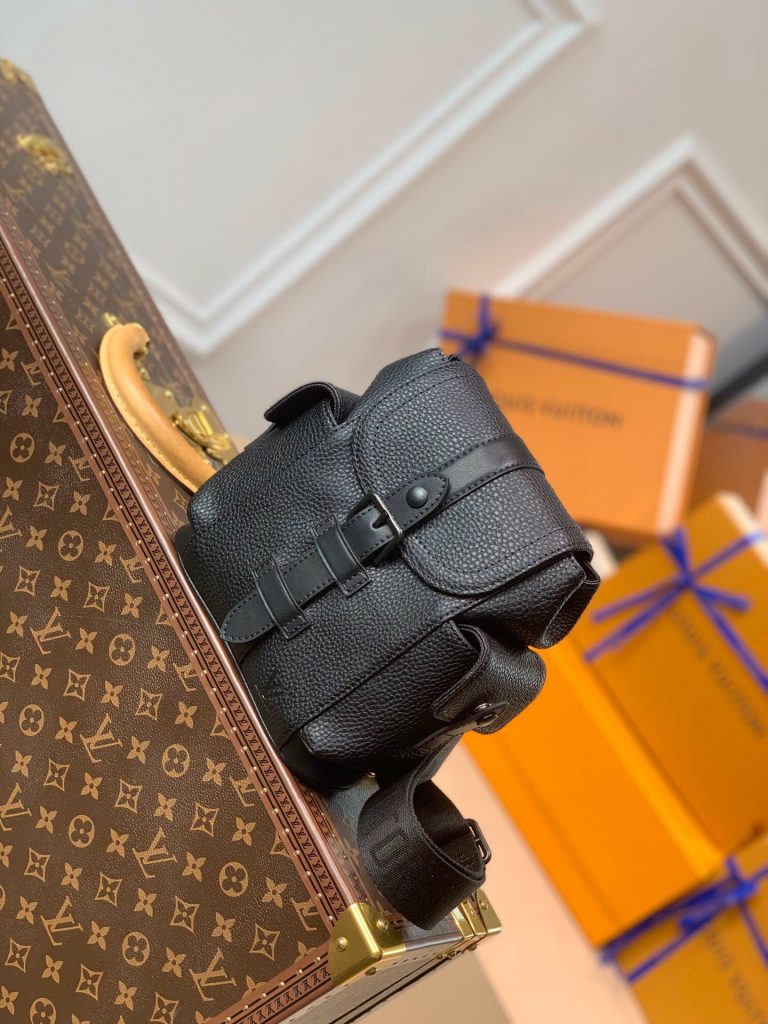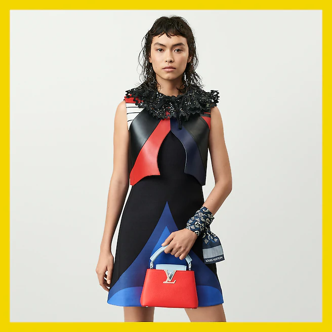 Soft and supple as an old-fashioned aerogram letter, fine-grained calfskin is accented with the LV initials in matte black metal.