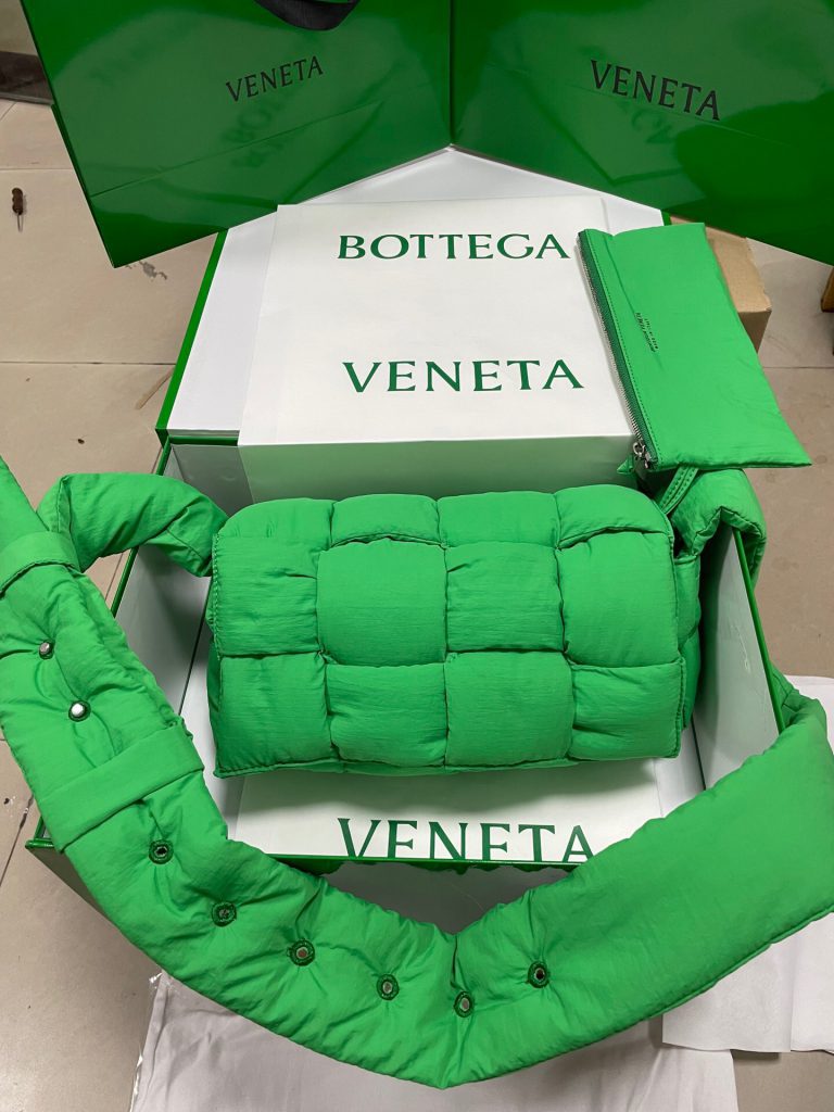 • Padded intreccio nylon cross-body bag