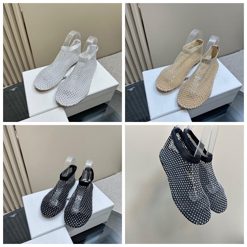 Abing Wang Flat Ankle Boot in Mesh with Crystals 2023
