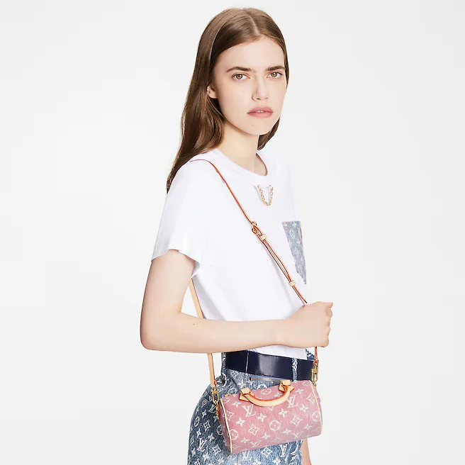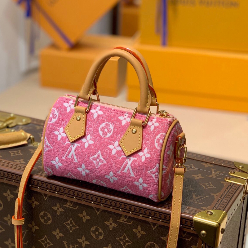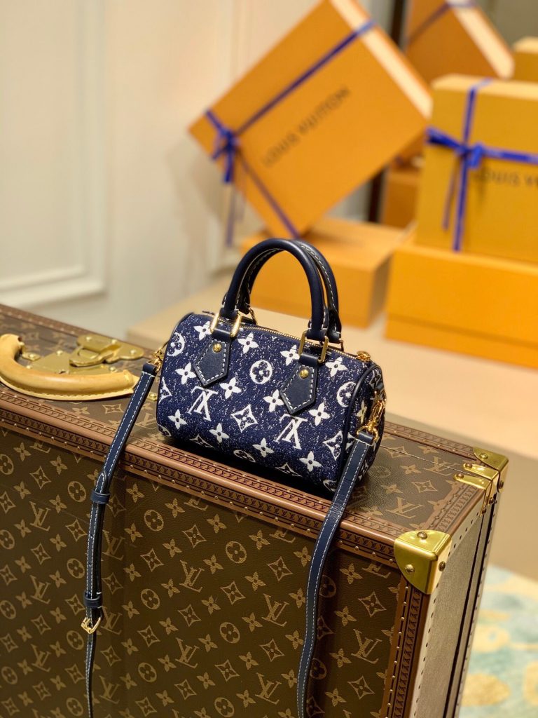 The Nano Speedy in Monogram jacquard denim is a perfect miniature version of Louis Vuitton’s iconic Speedy bag.