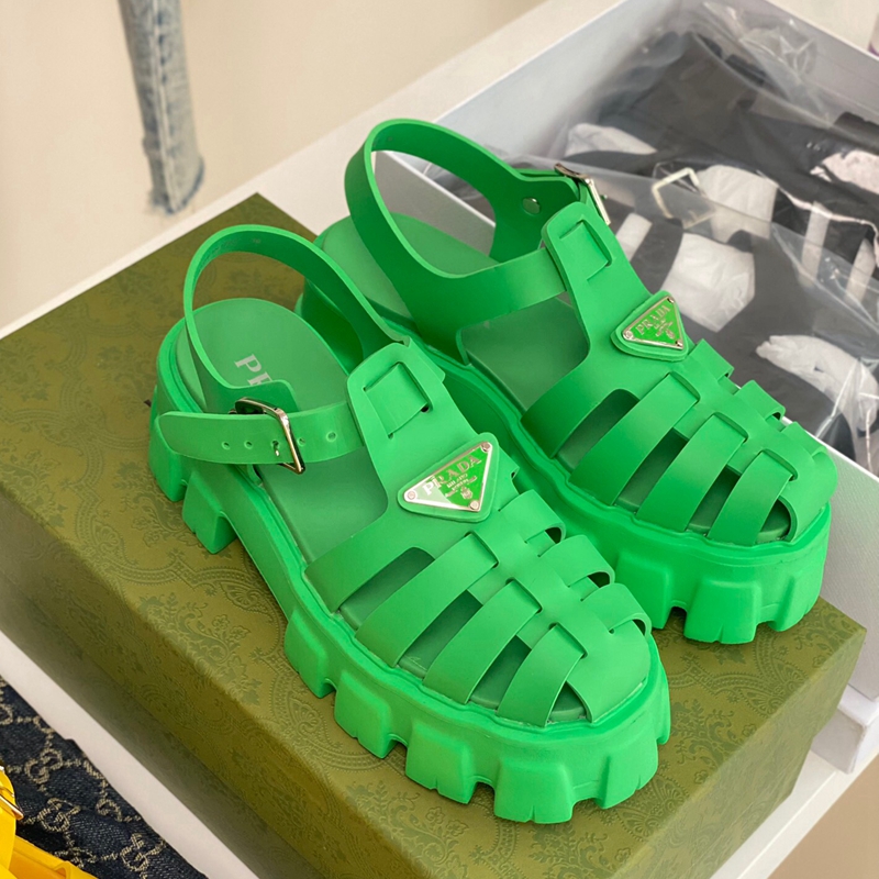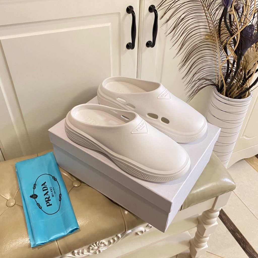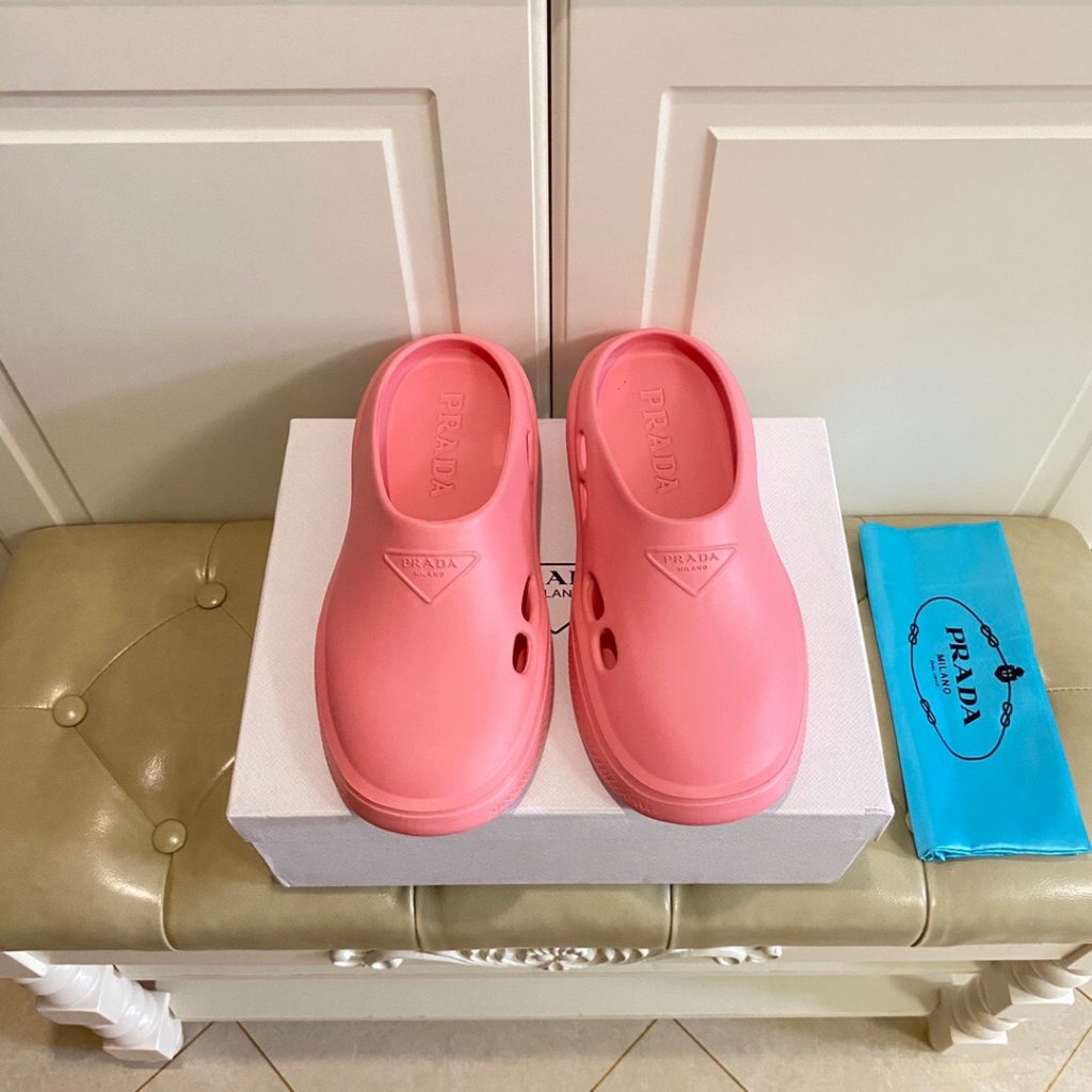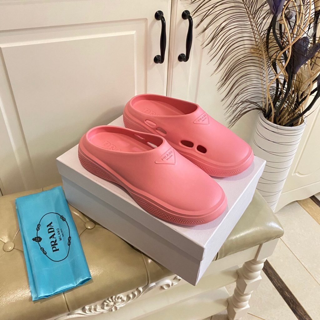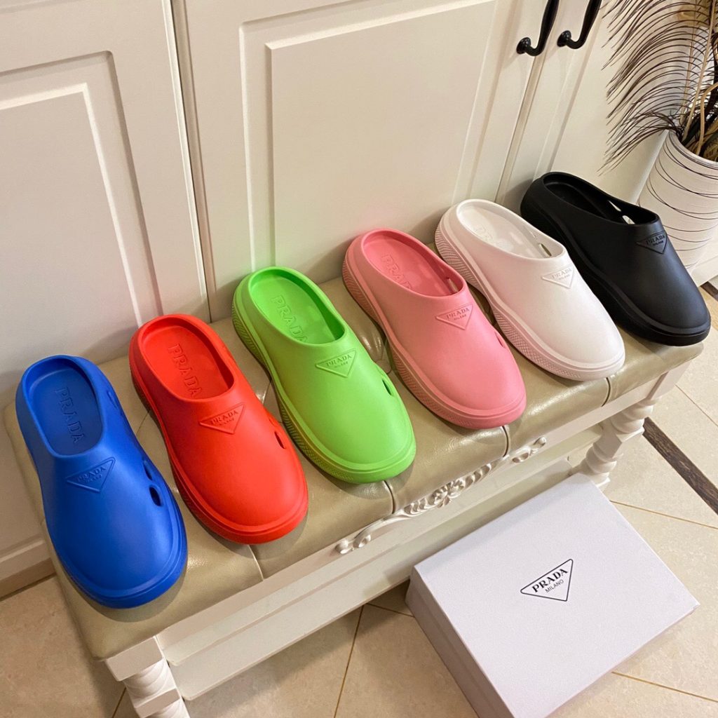 Made of rubber for a fun, contemporary look, the silhouette reinterprets retro beach footwear in a totally new way.