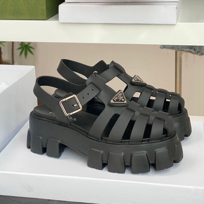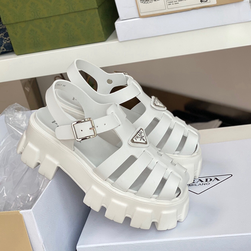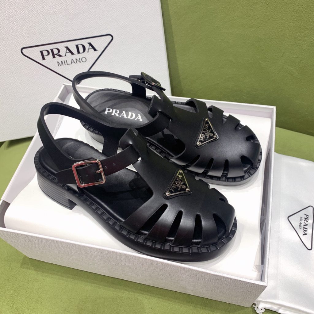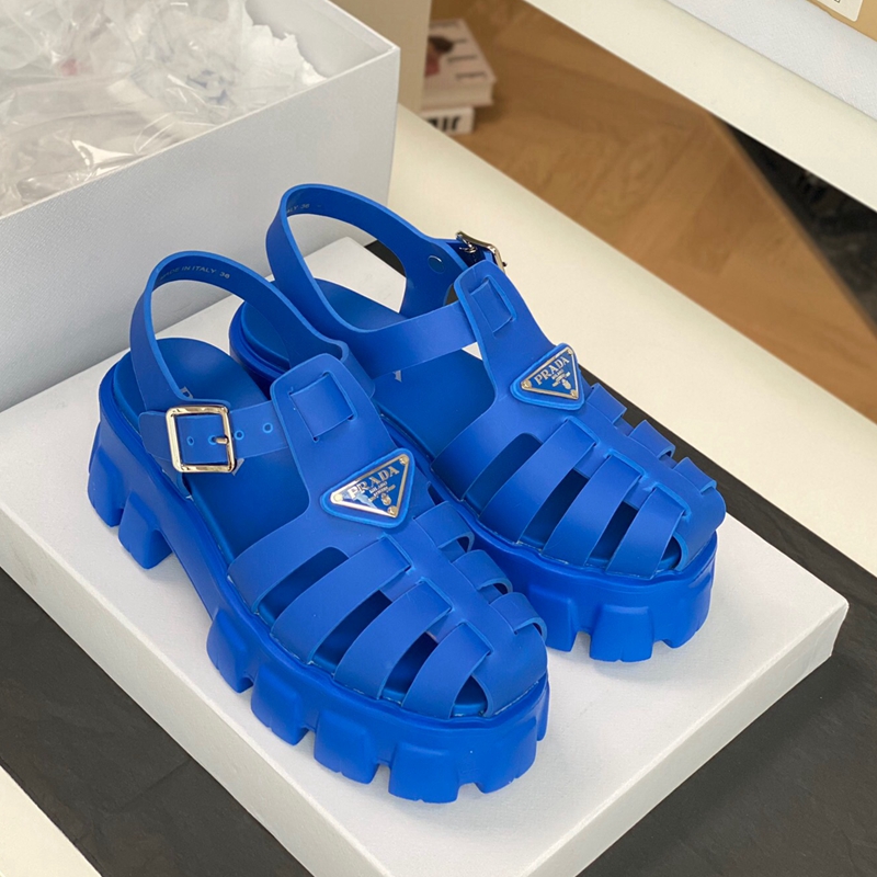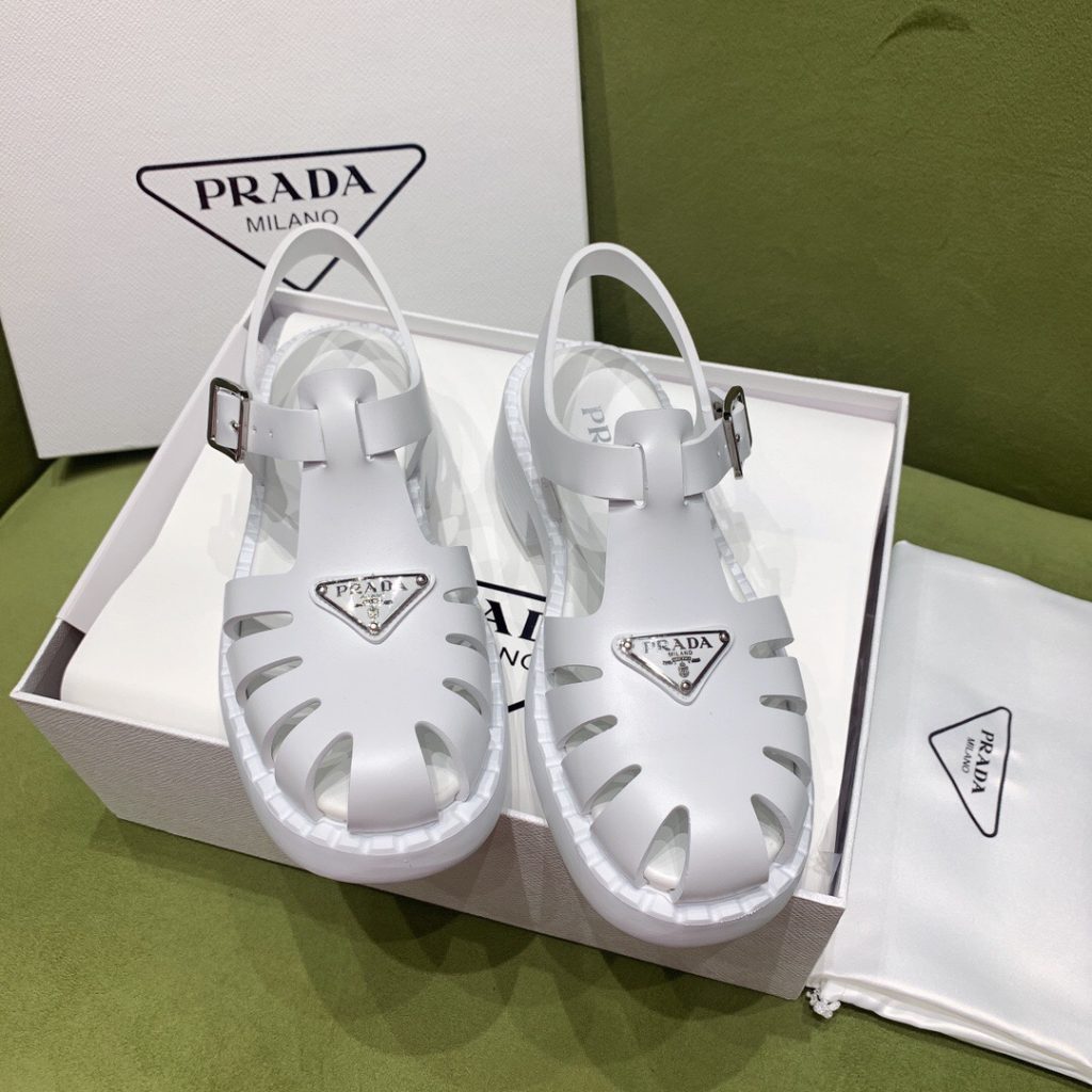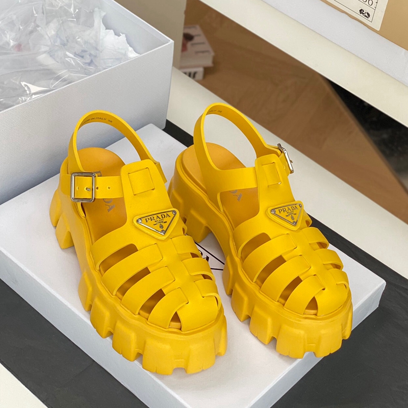 Made of rubber for a fun, contemporary look, the silhouette reinterprets retro beach footwear in a totally new way.