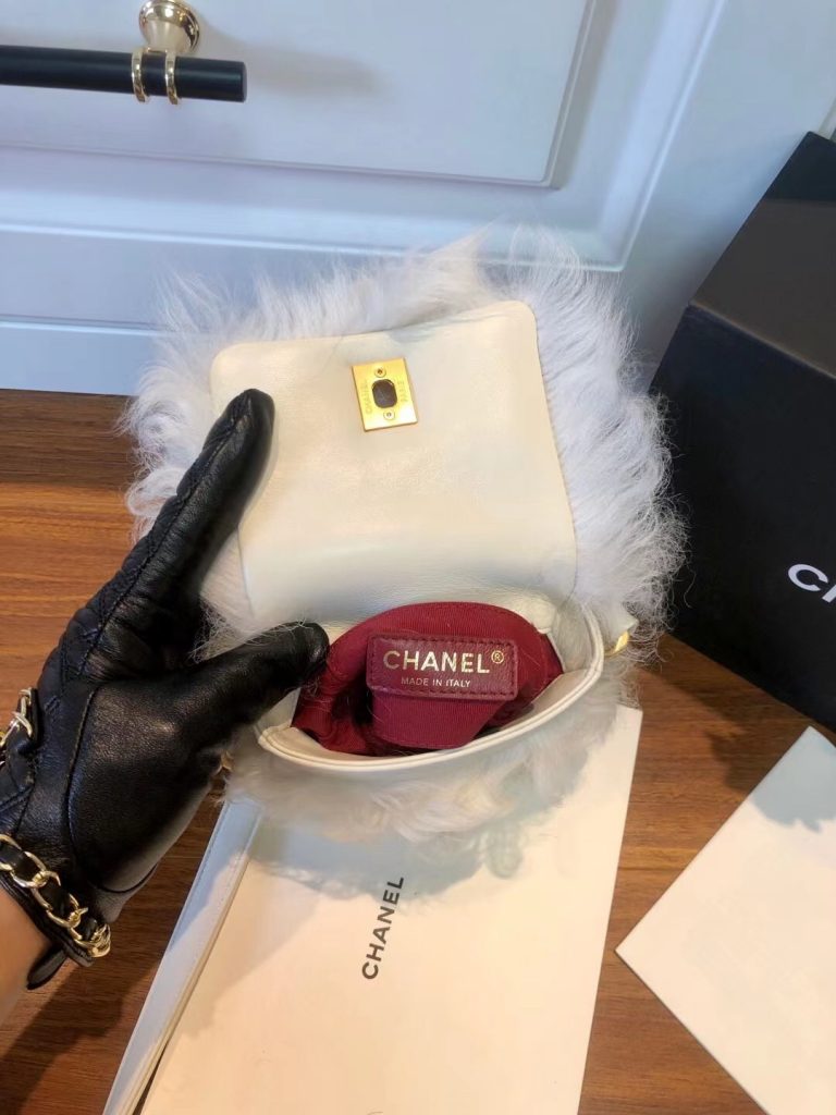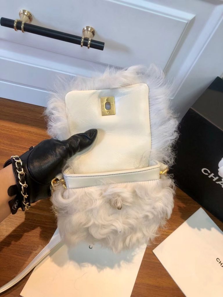 Chanel Shearling Mini Flap Bag AS2885 White 2021
