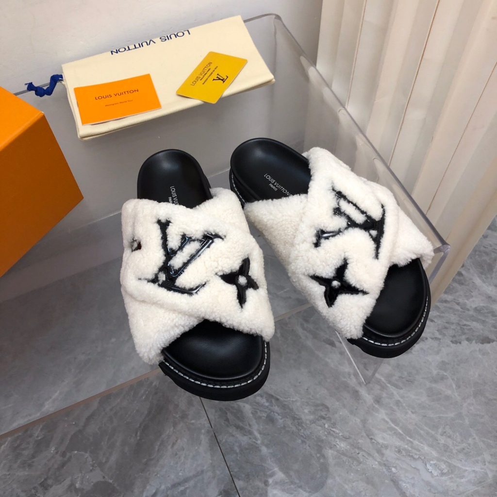 Louis Vuitton Paseo Flat Comfort Shearling Slide Sandals 2022