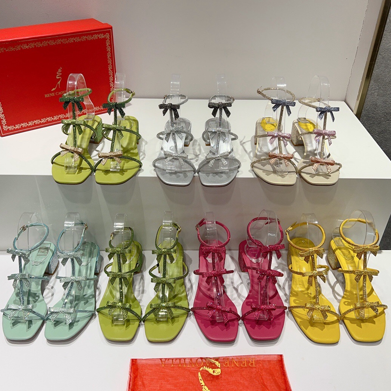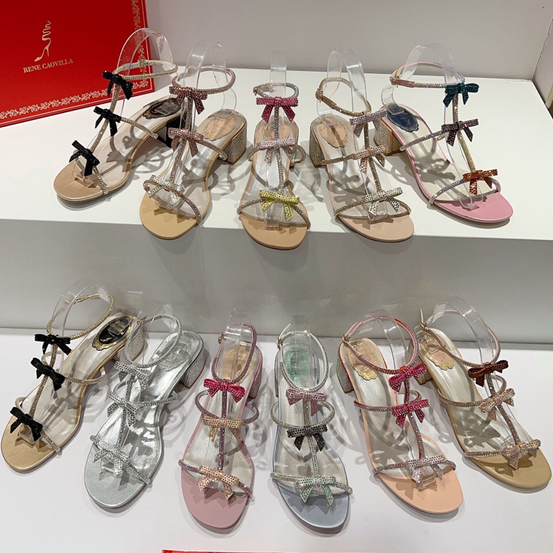 Rene Caovilla Caterina Crystals Heel Sandals 4.5cm with Bow 2023