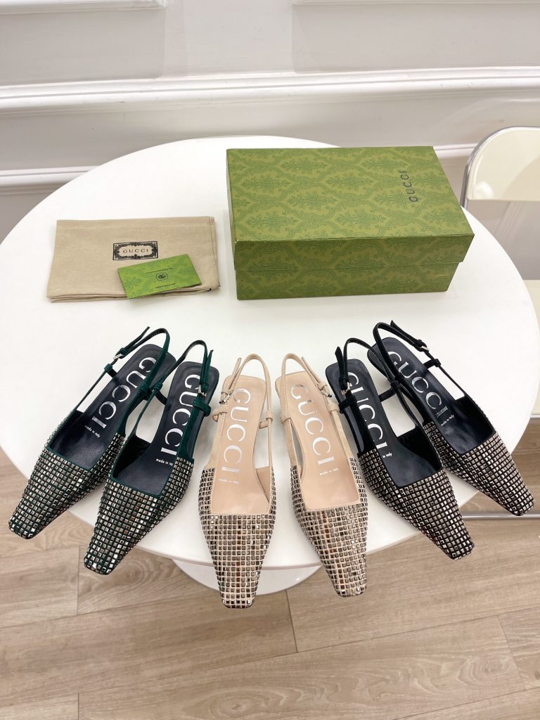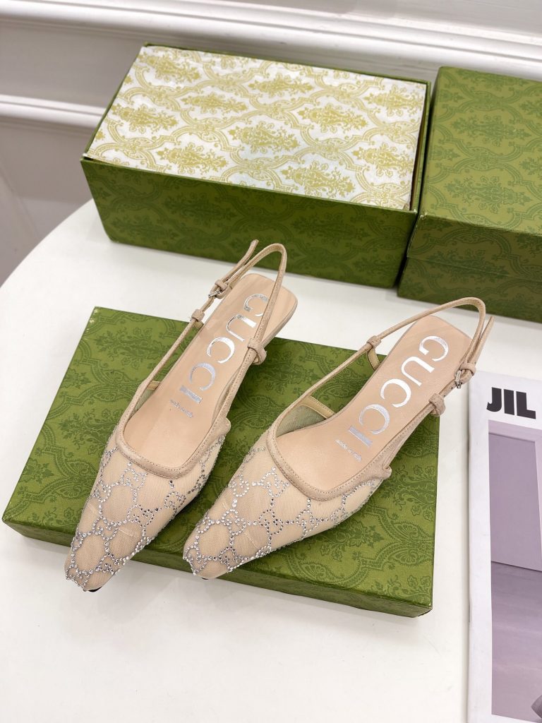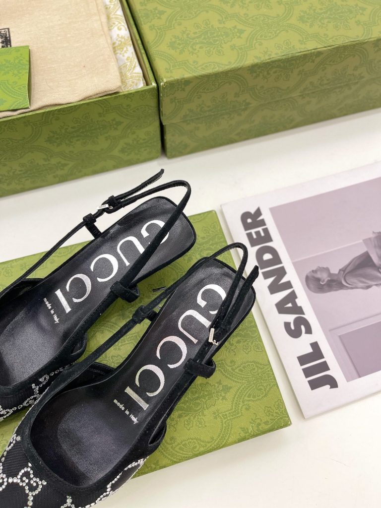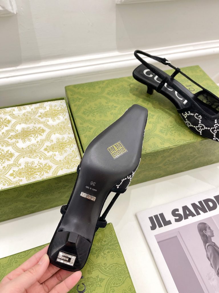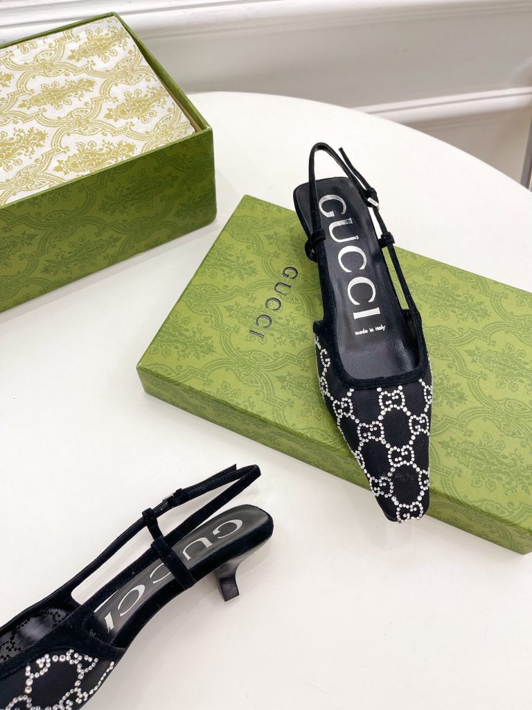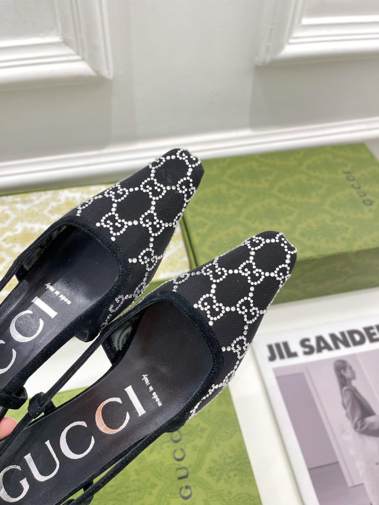 This pair of slingback shoes are presented in black mesh with a sparkling GG motif.