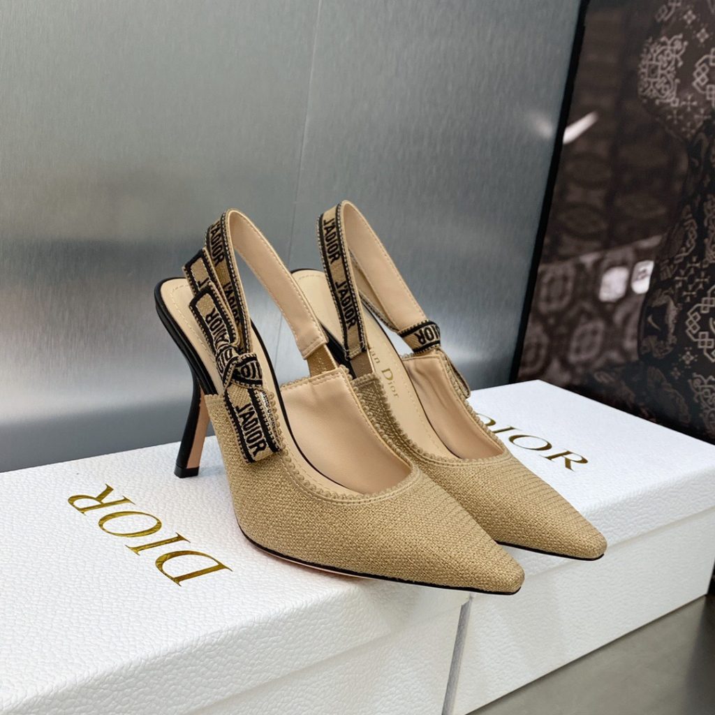 Dior J’Adior Slingback Pumps in Beige Embroidered Jute Canvas 2023