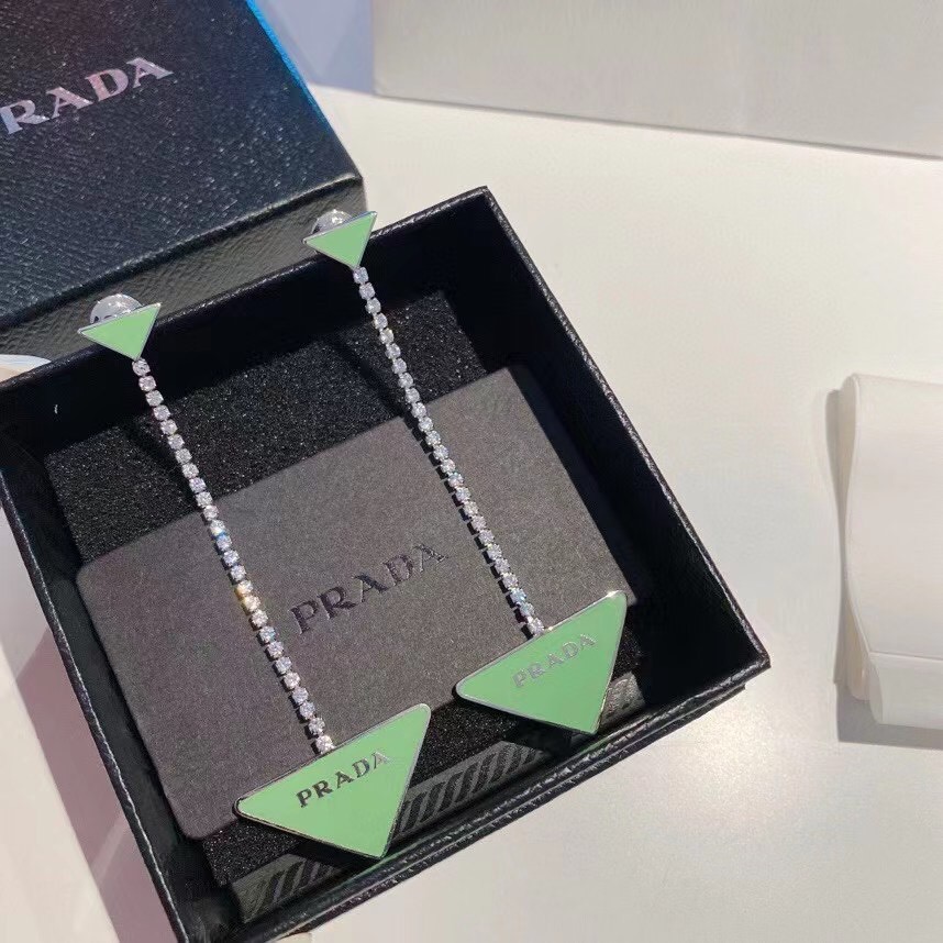 Prada Symbole Drop Long Earrings Green 2021