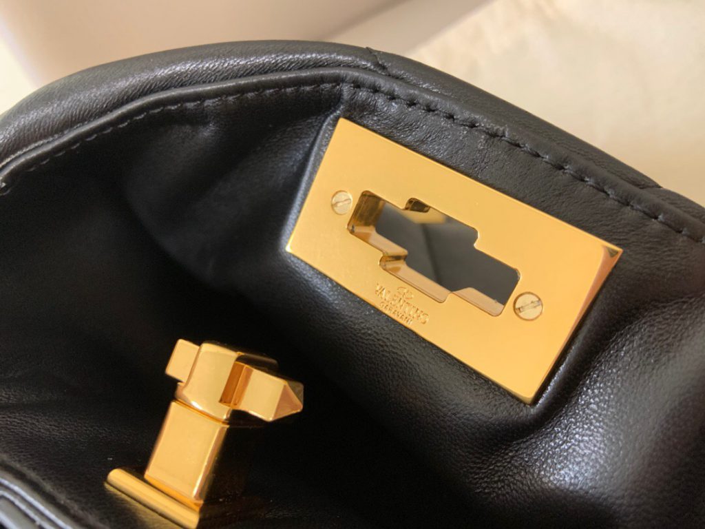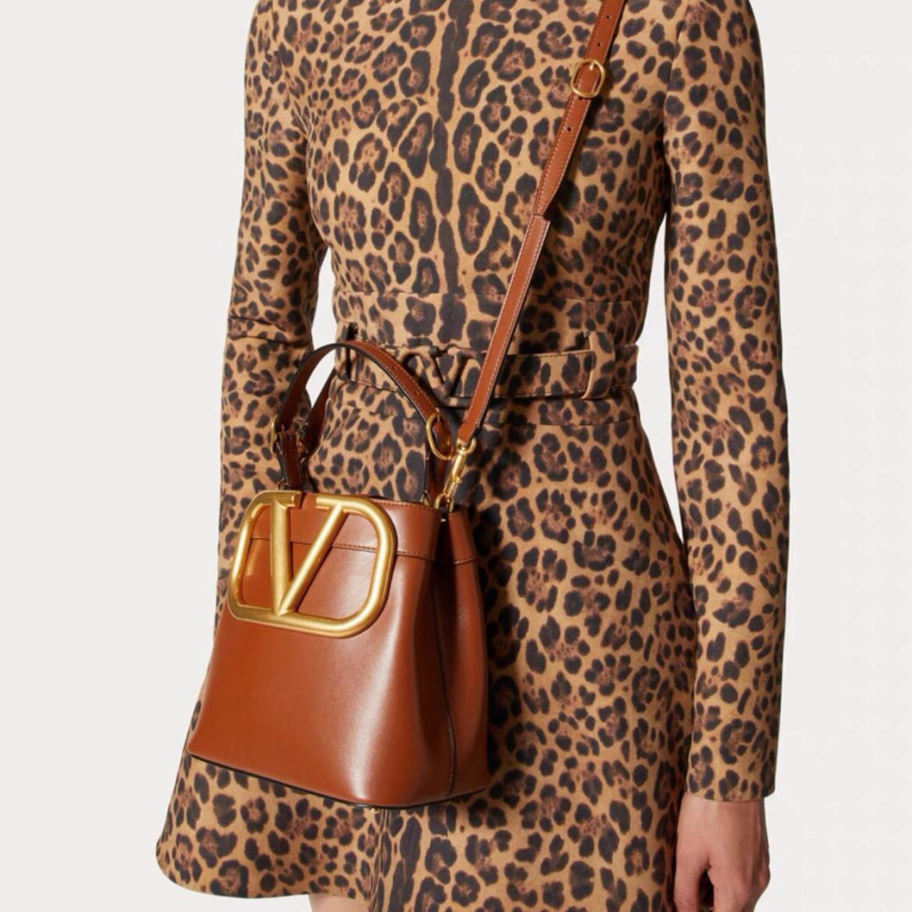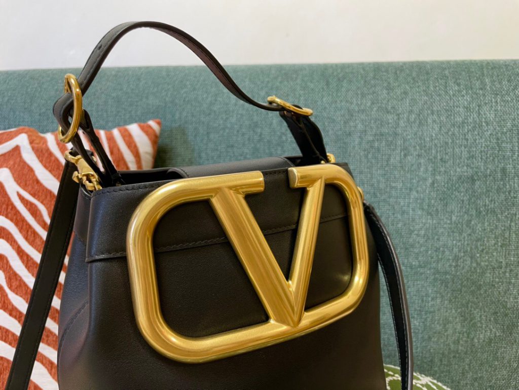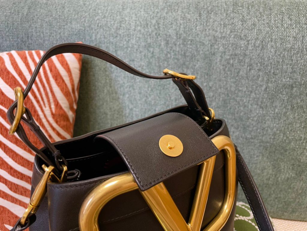 Valentino Supervee Calfskin Bucket Bag with Maxi VLogo Black 2021