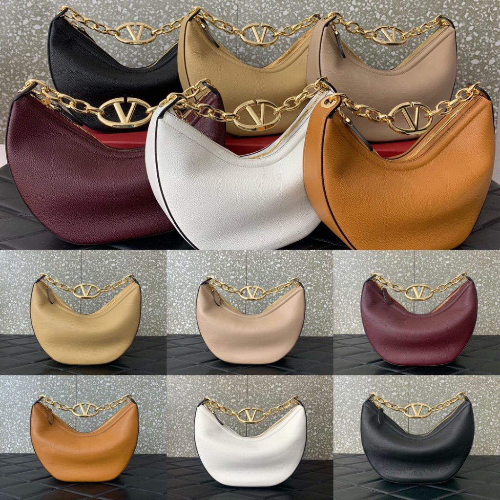 Valentino Small VLogo Moon Hobo Bag in Leather with Chain 2023