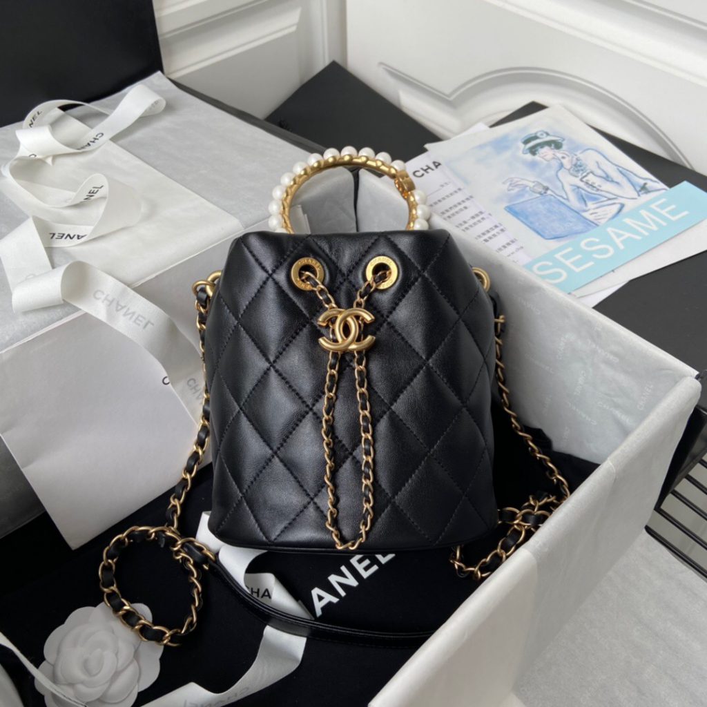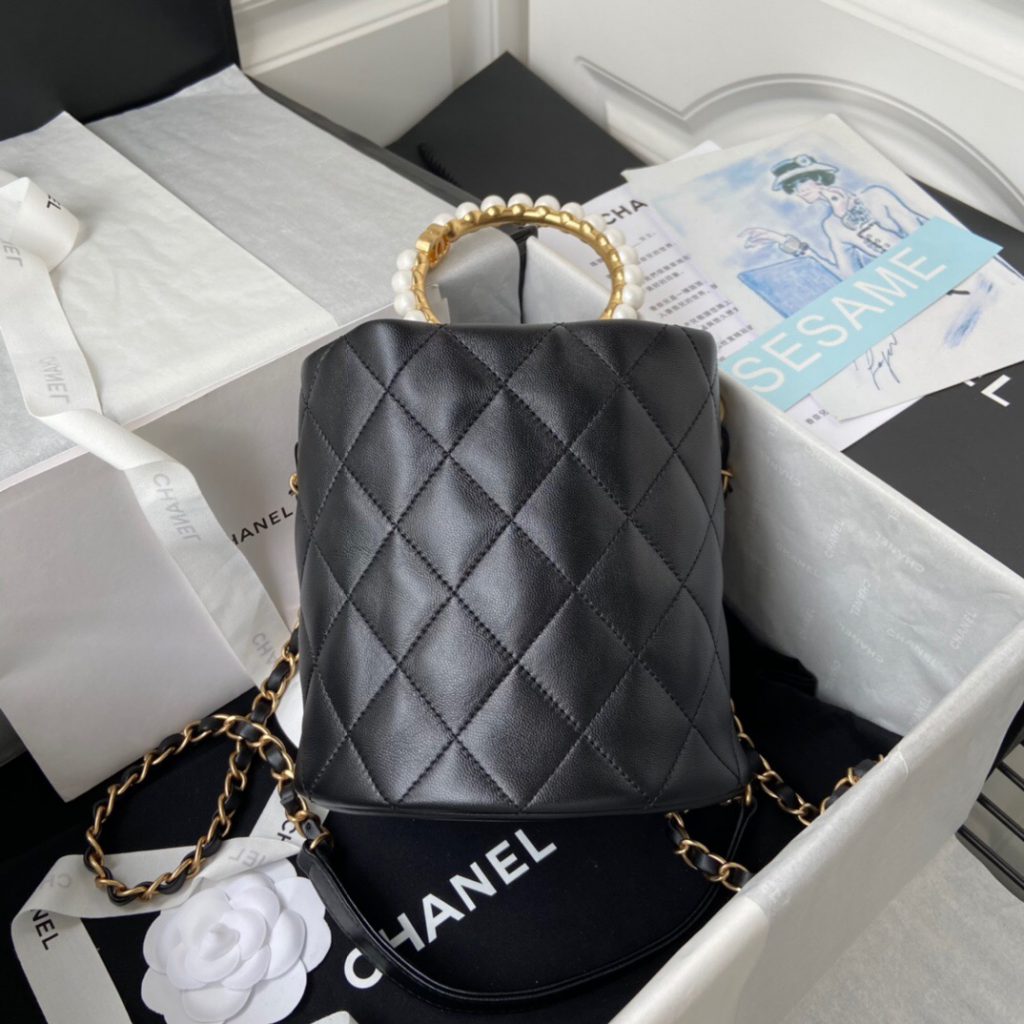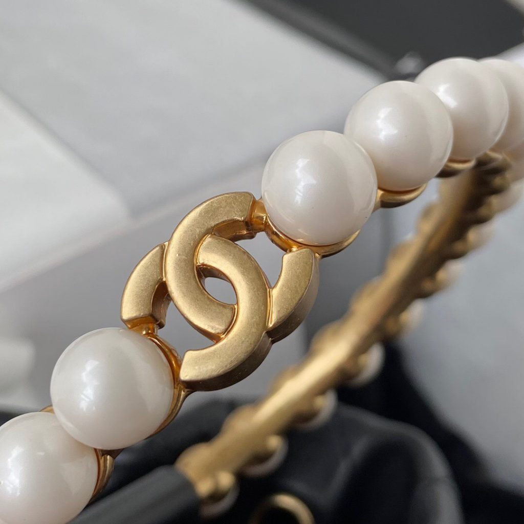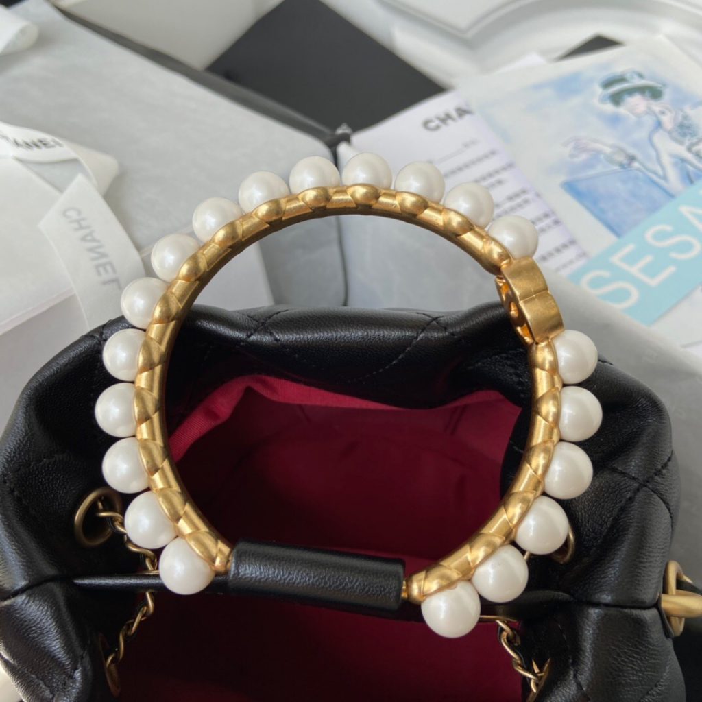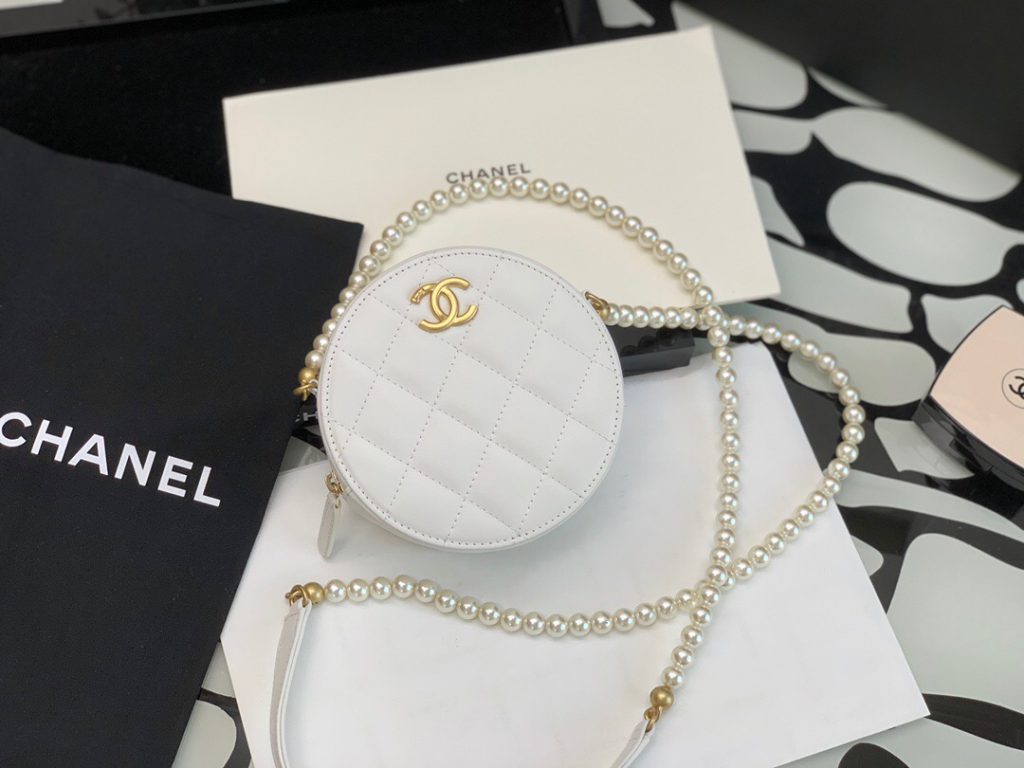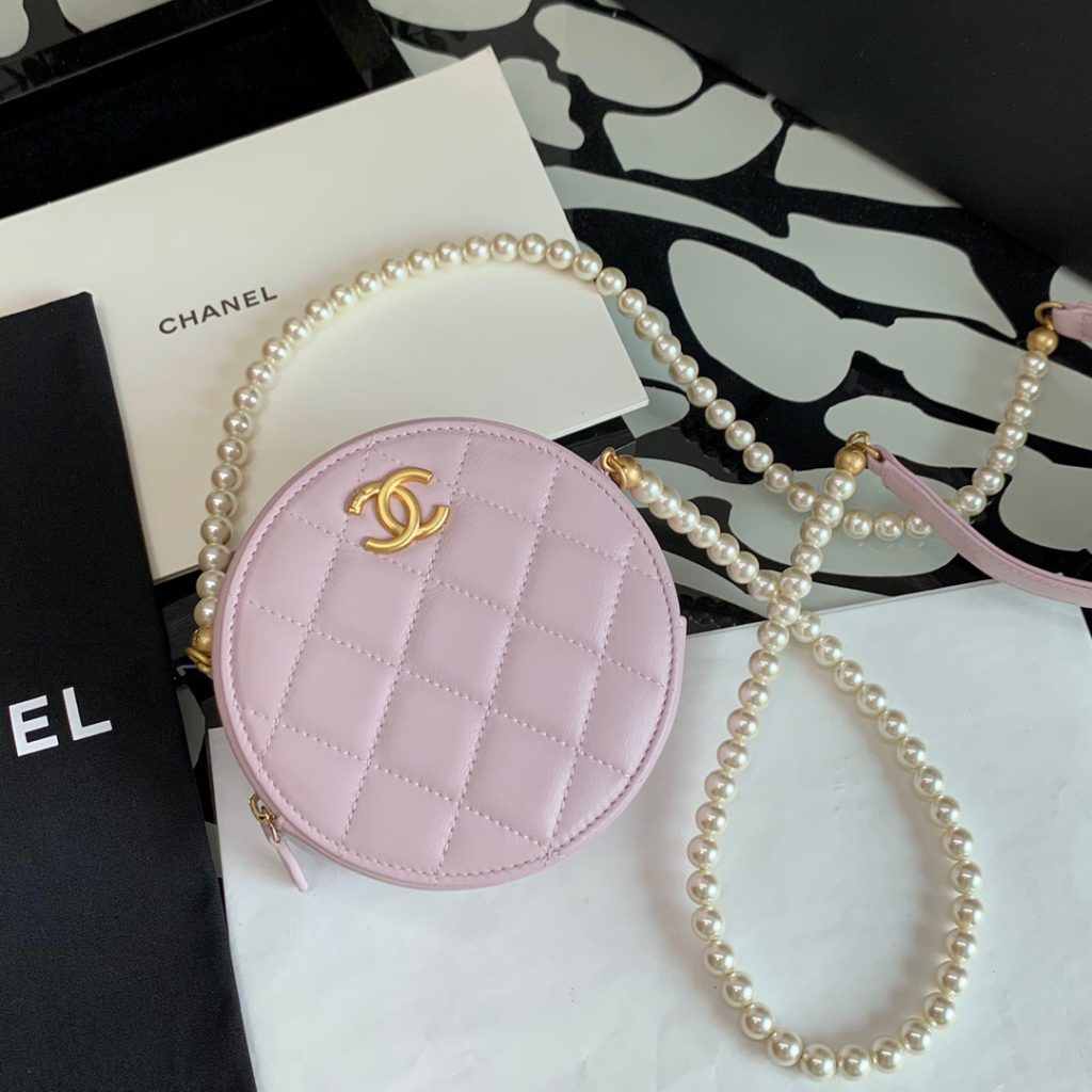 2, Calfskin Round Clutch with Pearl Chain
