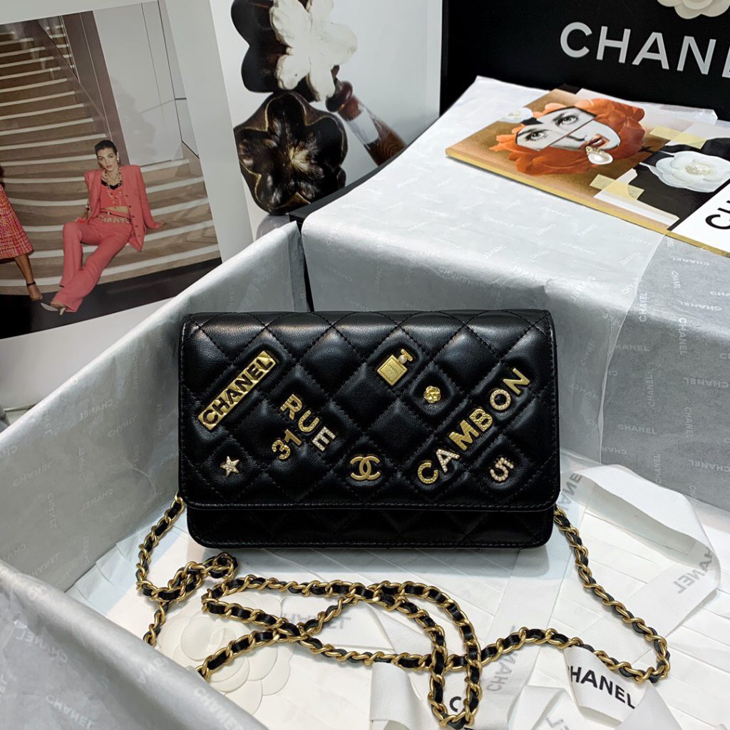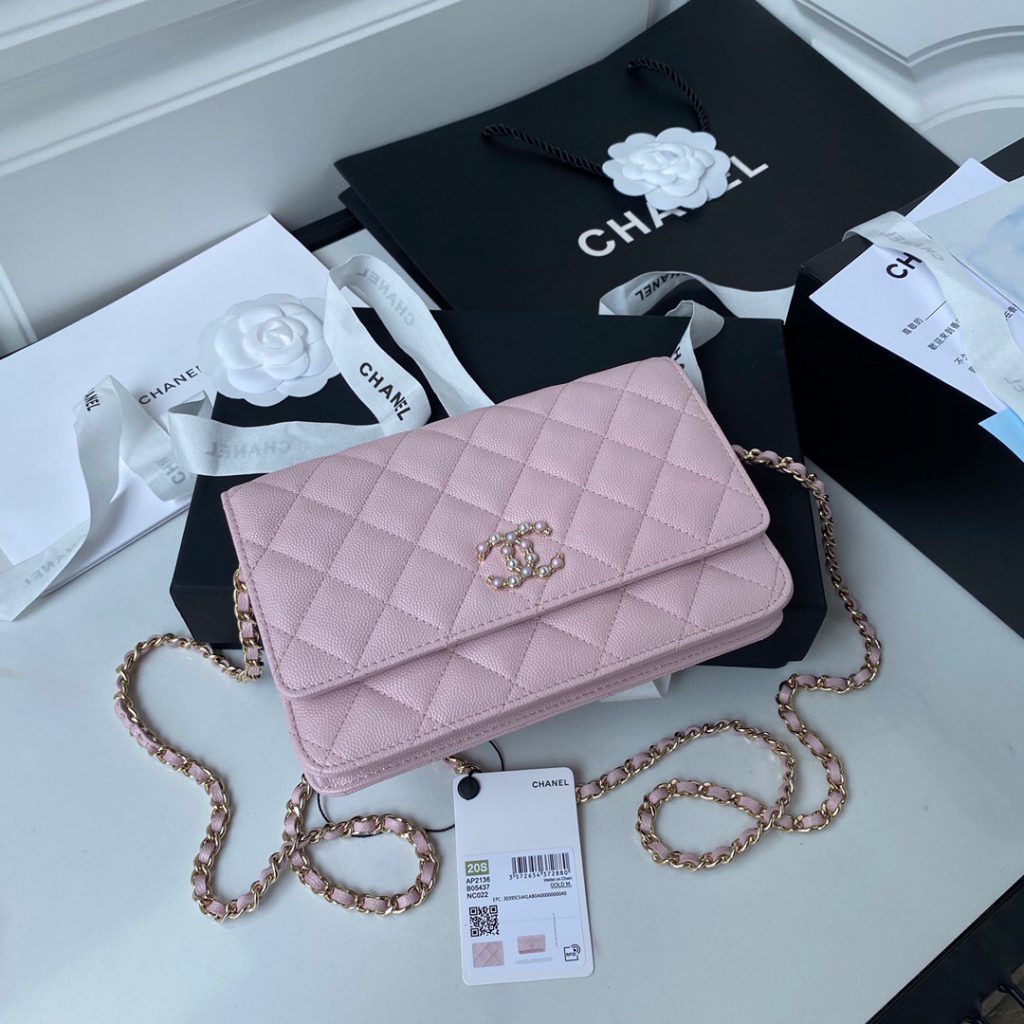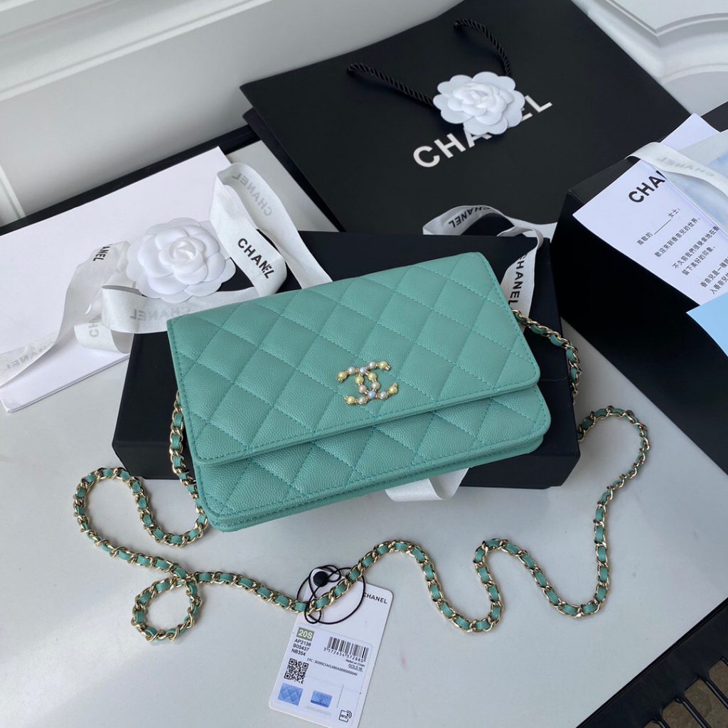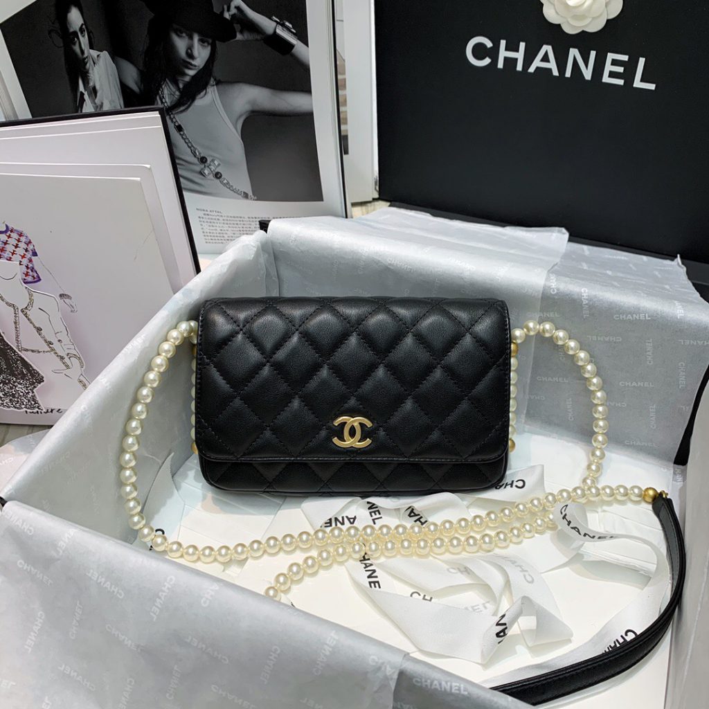 5, Calfskin Wallet on Pearl Chain WOC AP2190
